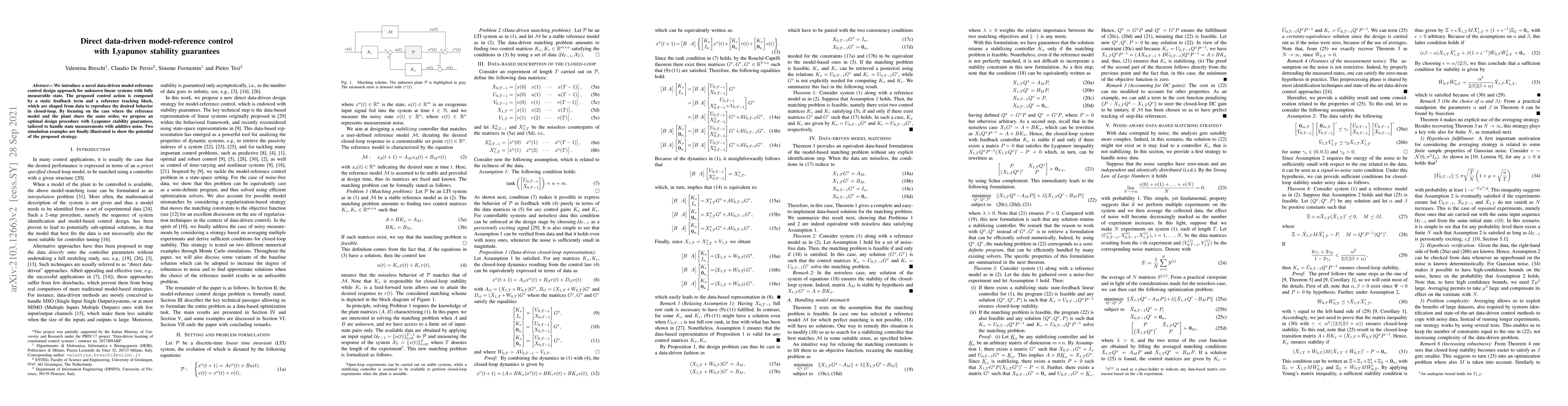 This paper presents a novel data-driven model-reference control method for unknown linear systems with measurable states, ensuring Lyapunov stability. The control design incorporates a static feedback and a reference tracking block, optimized to handle noisy state measurements, and is demonstrated through simulations.