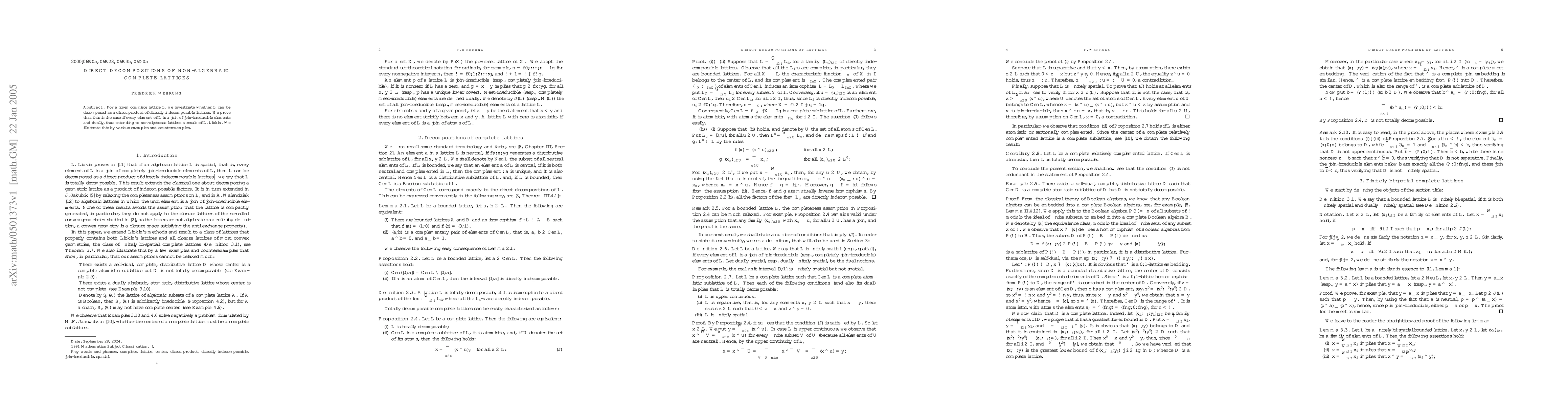 For a given complete lattice L, we investigate whether L can be decomposed as a direct product of directly indecomposable lattices. We prove that this is the case if every element of L is a join of join-irreducible elements and dually, thus extending to non-algebraic lattices a result of L. Libkin. We illustrate this by various examples and counterexamples.