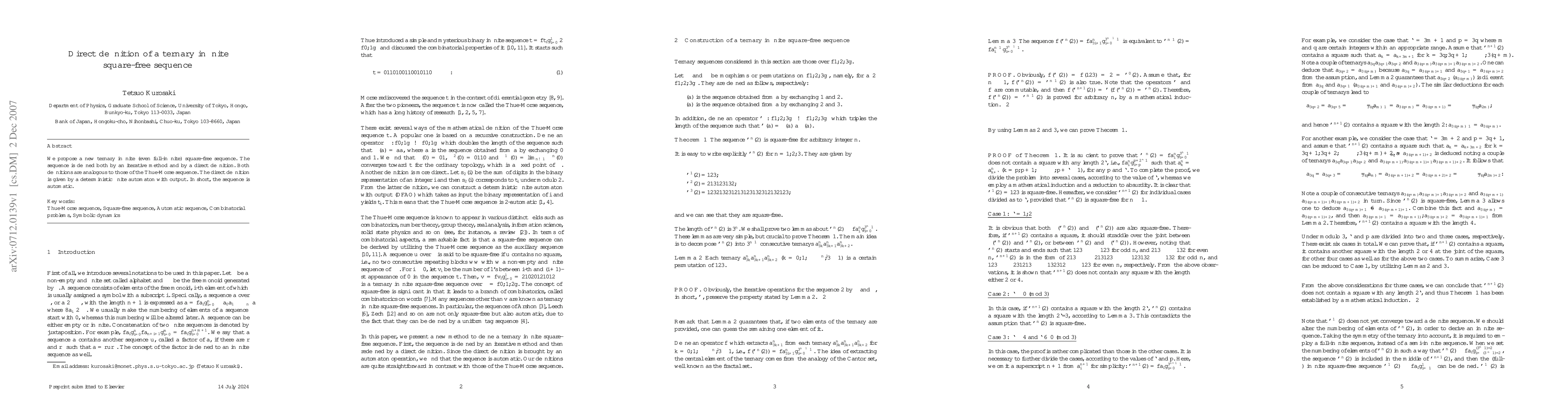 This paper introduces a new ternary infinite square-free sequence defined both iteratively and directly, analogous to the Thue-Morse sequence, with the direct definition provided by a deterministic finite automaton. The sequence is termed automatic due to its inherent structure.