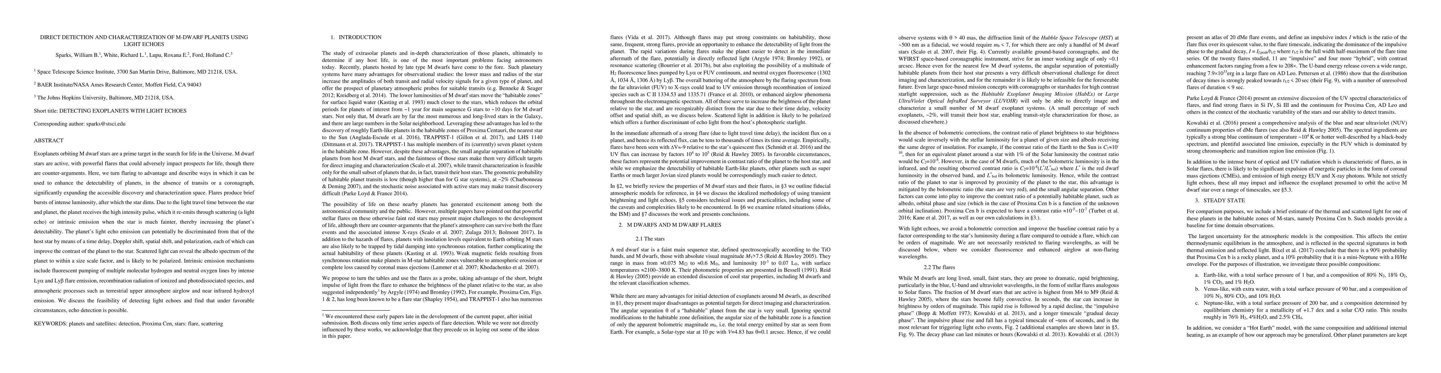 Exoplanets orbiting M dwarf stars are a prime target in the search for life in the Universe. M dwarf stars are active, with powerful flares that could adversely impact prospects for life, though there are counter-arguments. Here, we turn flaring to advantage and describe ways in which it can be used to enhance the detectability of planets, in the absence of transits or a coronagraph, significantly expanding the accessible discovery and characterization space. Flares produce brief bursts of intense luminosity, after which the star dims. Due to the light travel time between the star and planet, the planet receives the high intensity pulse, which it re-emits through scattering (a light echo) or intrinsic emission when the star is much fainter, thereby increasing the planet's detectability. The planet's light echo emission can potentially be discriminated from that of the host star by means of a time delay, Doppler shift, spatial shift, and polarization, each of which can improve the contrast of the planet to the star. Scattered light can reveal the albedo spectrum of the planet to within a size scale factor, and is likely to be polarized. Intrinsic emission mechanisms include fluorescent pumping of multiple molecular hydrogen and neutral oxygen lines by intense LyAlpha and LyBeta flare emission, recombination radiation of ionized and photodissociated species, and atmospheric processes such as terrestrial upper atmosphere airglow and near infrared hydroxyl emission. We discuss the feasibility of detecting light echoes and find that under favorable circumstances, echo detection is possible.
