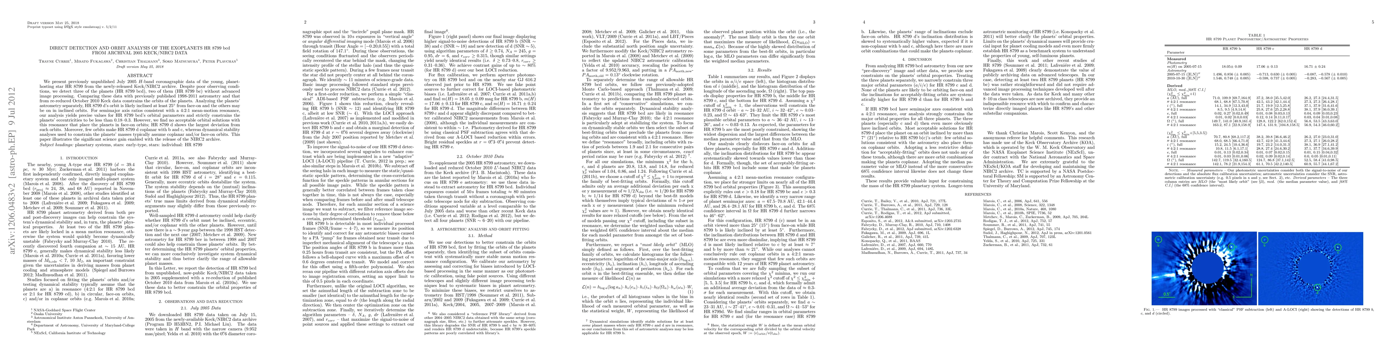 We present previously unpublished July 2005 $H$-band coronagraphic data of the young, planet-hosting star HR 8799 from the newly-released Keck/NIRC2 archive. Despite poor observing conditions, we detect three of the planetary companions (HR 8799 bcd), two of them (HR 8799 bc) without advanced image processing. Comparing these data with previously published 1998-2011 astrometry and that from re-reduced October 2010 Keck data constrains the orbits of the planets. Analyzing the planets' astrometry separately, HR 8799 d's orbit is likely inclined at least 25$^\circ$ from face-on and the others may be on in inclined orbits. For semimajor axis ratios consistent with a 4:2:1 mean-motion resonance, our analysis yields precise values for HR 8799 bcd's orbital parameters and strictly constrains the planets' eccentricities to be less than 0.18--0.3. However, we find no acceptable orbital solutions with this resonance that place the planets in face-on orbits; HR 8799 d shows the largest deviation from such orbits. Moreover, few orbits make HR 8799 d coplanar with b and c, whereas dynamical stability analyses used to constrain the planets' masses typically assume coplanar and/or face-on orbits. This paper illustrates the significant science gain enabled with the release of the NIRC2 archive.