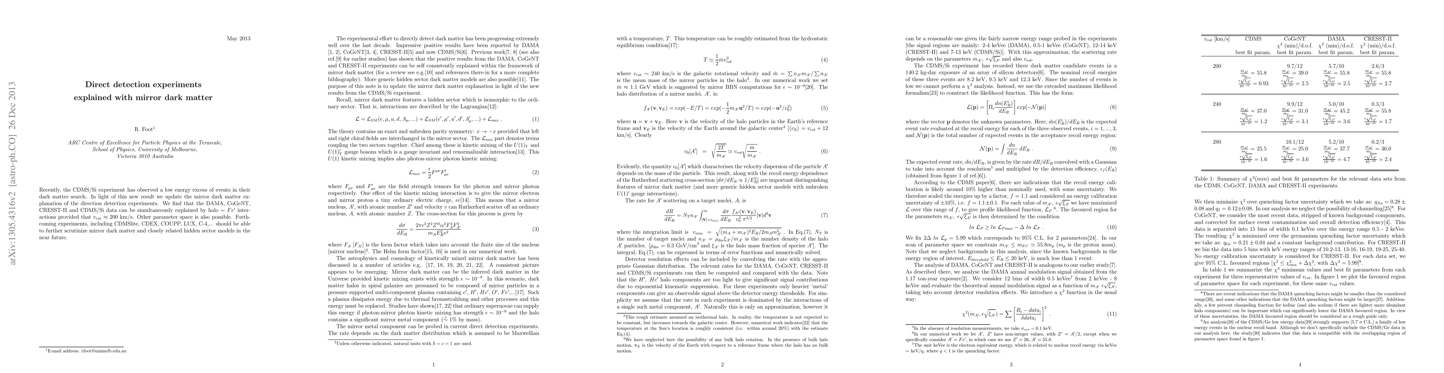 This paper updates the mirror dark matter explanation for recent direct detection experiments, showing that the observed low-energy excess in CDMS/Si can be explained by halo interactions with mirror iron. Upcoming experiments are expected to further test these models.