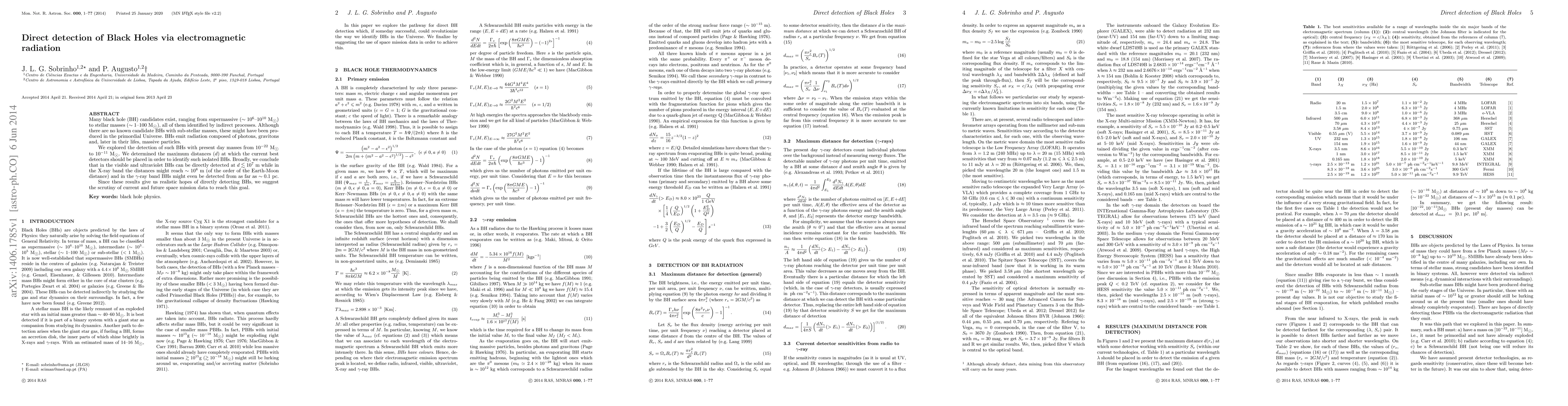 Many black hole (BH) candidates exist, ranging from supermassive ($\sim10^{6}$--$10^{10}$ M$_{\odot}$) to stellar masses ($\sim 1$--$100$ M$_{\odot}$), all of them identified by indirect processes. Although there are no known candidate BHs with sub-stellar masses, these might have been produced in the primordial Universe. BHs emit radiation composed of photons, gravitons and, later in their lifes, massive particles. We explored the detection of such BHs with present day masses from $10^{-22}$ M$_{\odot}$ to $10^{-11}$ M$_{\odot}$. We determined the maximum distances ($d$) at which the current best detectors should be placed in order to identify such isolated BHs. Broadly, we conclude that in the visible and ultraviolet BHs can be directly detected at $d\lesssim 10^7$ m while in the X-ray band the distances might reach $\sim10^8$ m (of the order of the Earth-Moon distance) and in the $\gamma$-ray band BHs might even be detected from as far as $\sim 0.1$ pc. Since these results give us realistic hopes of directly detecting BHs, we suggest the scrutiny of current and future space mission data to reach this goal.