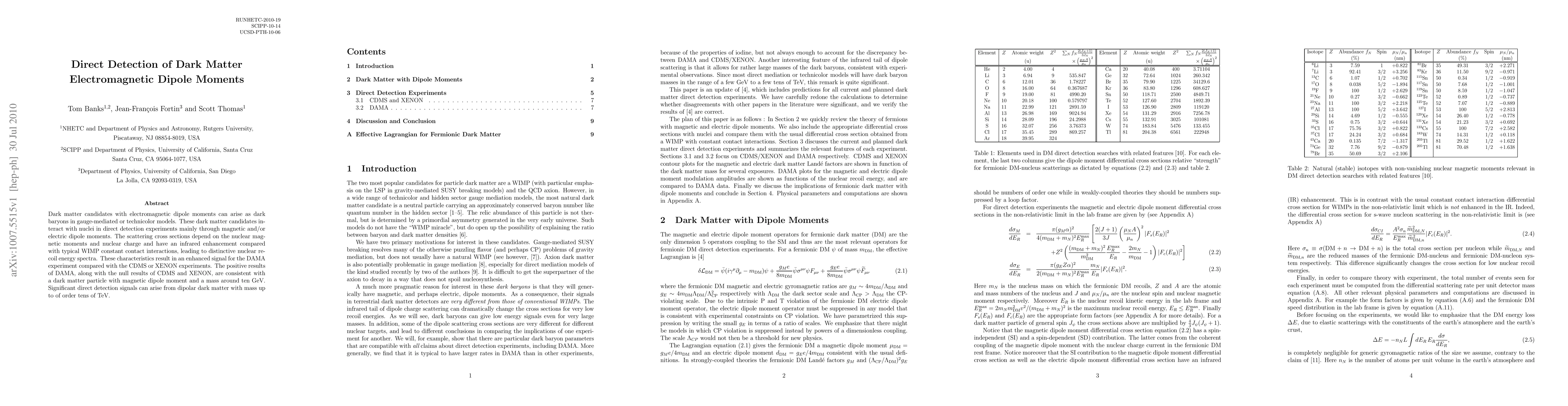 This paper explores dark matter candidates with electromagnetic dipole moments, suggesting they could enhance detection signals in experiments like DAMA due to their unique interaction mechanisms. The study finds that a dark matter particle with a magnetic dipole moment and a mass around ten GeV aligns with DAMA's positive results, contrasting with null findings from CDMS and XENON.