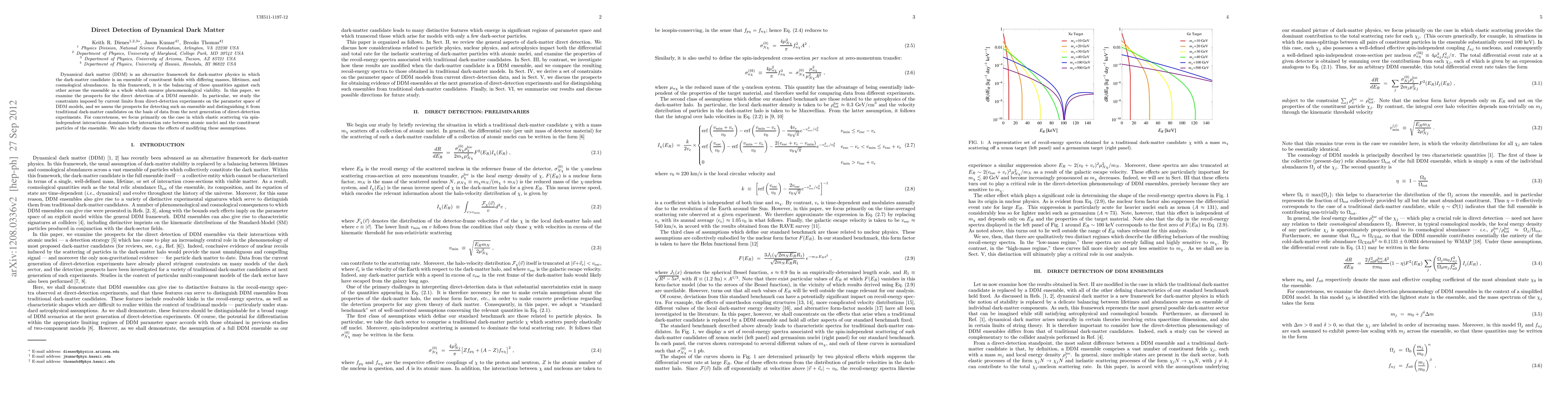 The paper presents a detailed analysis of the direct detection phenomenology of DDM ensembles, identifying unique features in recoil energy spectra that could distinguish them from traditional dark matter candidates, and assesses the potential of future direct detection experiments to probe these signatures.