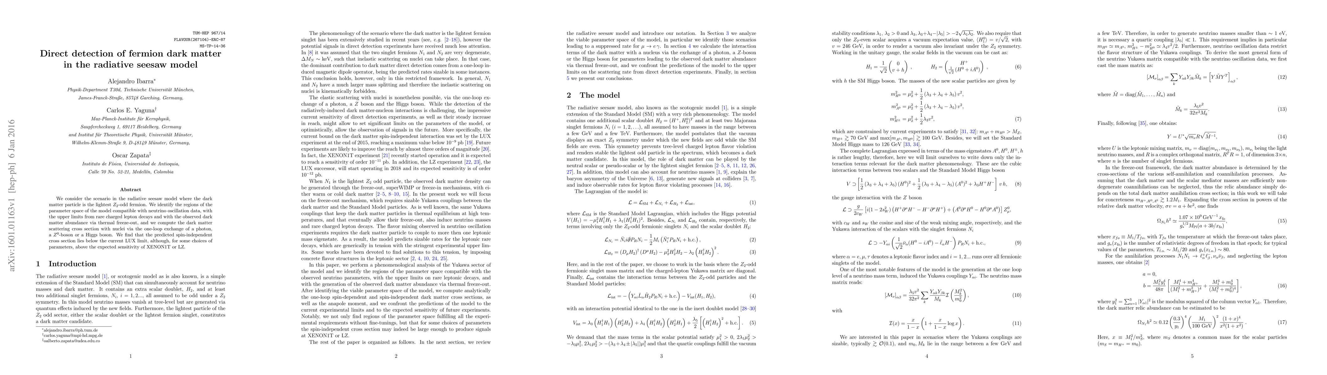 This paper explores the radiative seesaw model where the lightest $Z_2$-odd fermion serves as dark matter. It identifies parameter regions consistent with neutrino data, rare decay limits, and observed dark matter abundance, and finds that while current LUX limits exceed the predicted spin-independent cross section, future detectors like XENON1T or LZ may detect it.