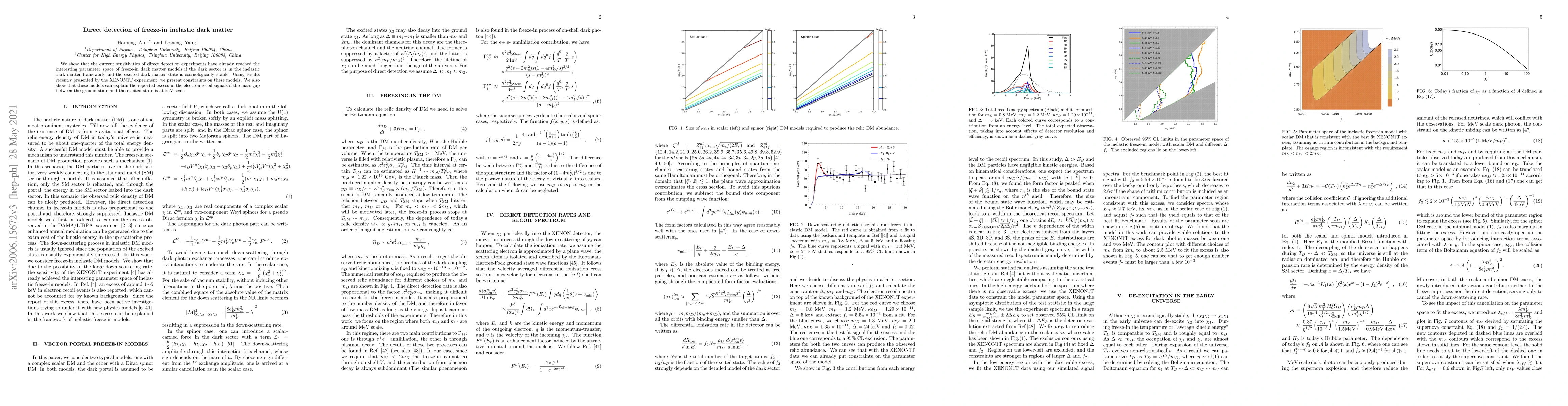 This paper demonstrates that current direct detection experiments have begun to constrain inelastic freeze-in dark matter models, particularly those with stable excited states. It also suggests that these models could account for the observed excess in electron recoil signals from the XENON1T experiment, provided the mass difference between states is at the keV scale.