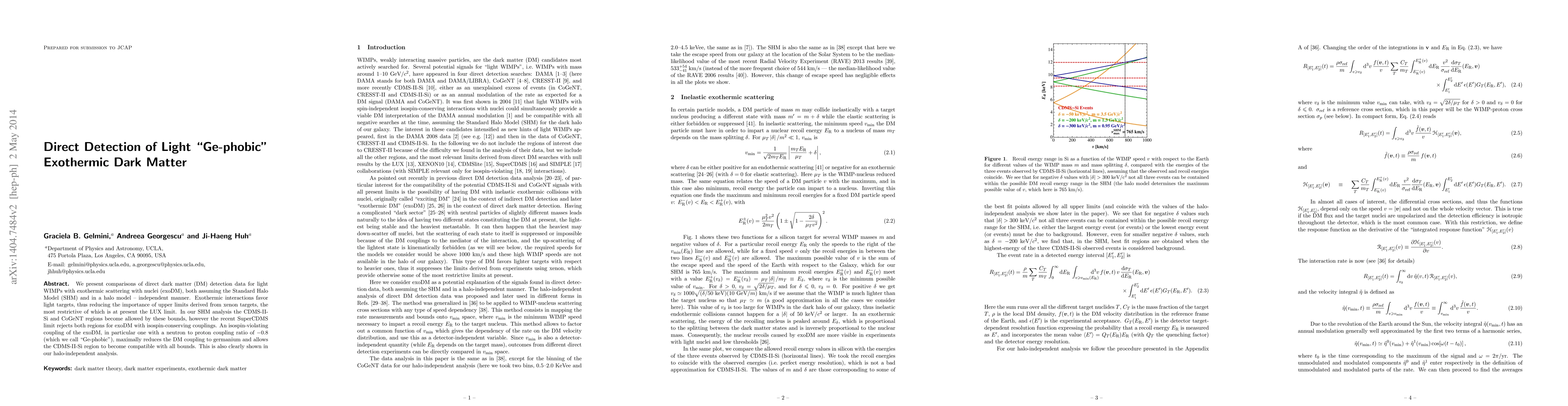 This paper investigates direct detection data for light Weakly Interacting Massive Particles (WIMPs) that scatter exothermically with nuclei, finding that exothermic interactions favor light targets. It shows that an "Ge-phobic" isospin-violating coupling, which minimizes germanium interactions, allows the CDMS-II-Si region to align with all detection limits, even in the face of recent SuperCDMS constraints.