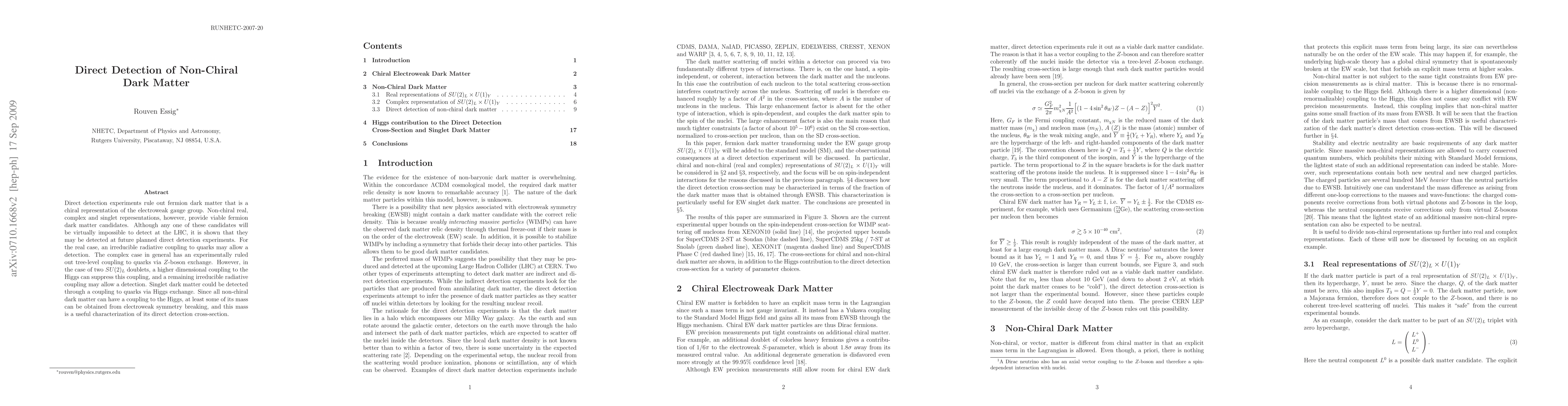 Direct detection experiments rule out fermion dark matter that is a chiral representation of the electroweak gauge group. Non-chiral real, complex and singlet representations, however, provide viable fermion dark matter candidates. Although any one of these candidates will be virtually impossible to detect at the LHC, it is shown that they may be detected at future planned direct detection experiments. For the real case, an irreducible radiative coupling to quarks may allow a detection. The complex case in general has an experimentally ruled out tree-level coupling to quarks via Z-boson exchange. However, in the case of two SU(2)_L doublets, a higher dimensional coupling to the Higgs can suppress this coupling, and a remaining irreducible radiative coupling may allow a detection. Singlet dark matter could be detected through a coupling to quarks via Higgs exchange. Since all non-chiral dark matter can have a coupling to the Higgs, at least some of its mass can be obtained from electroweak symmetry breaking, and this mass is a useful characterization of its direct detection cross-section.