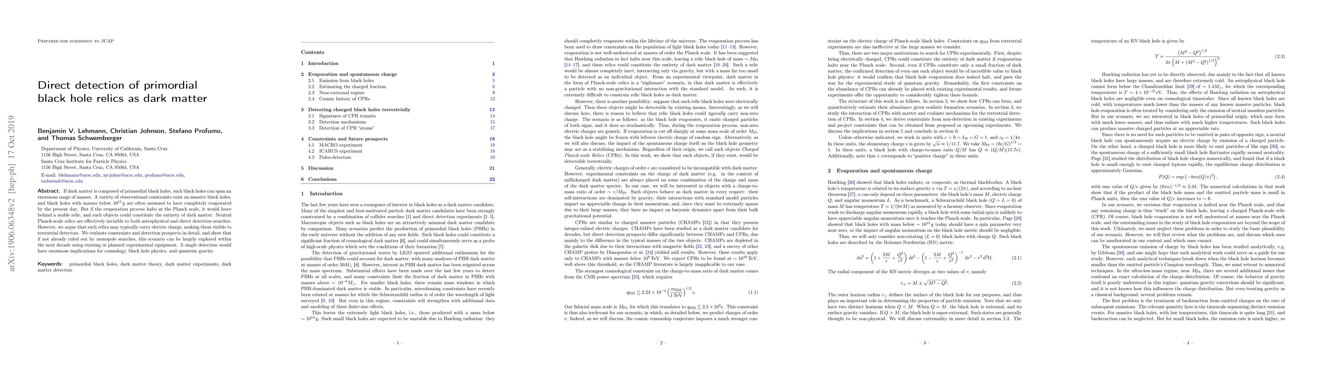 This paper explores the possibility that primordial black holes, which could carry electric charge, might constitute dark matter. It argues that if their evaporation halts at the Planck scale, they remain stable and could be detected by terrestrial detectors, offering significant implications for cosmology and quantum gravity if found.