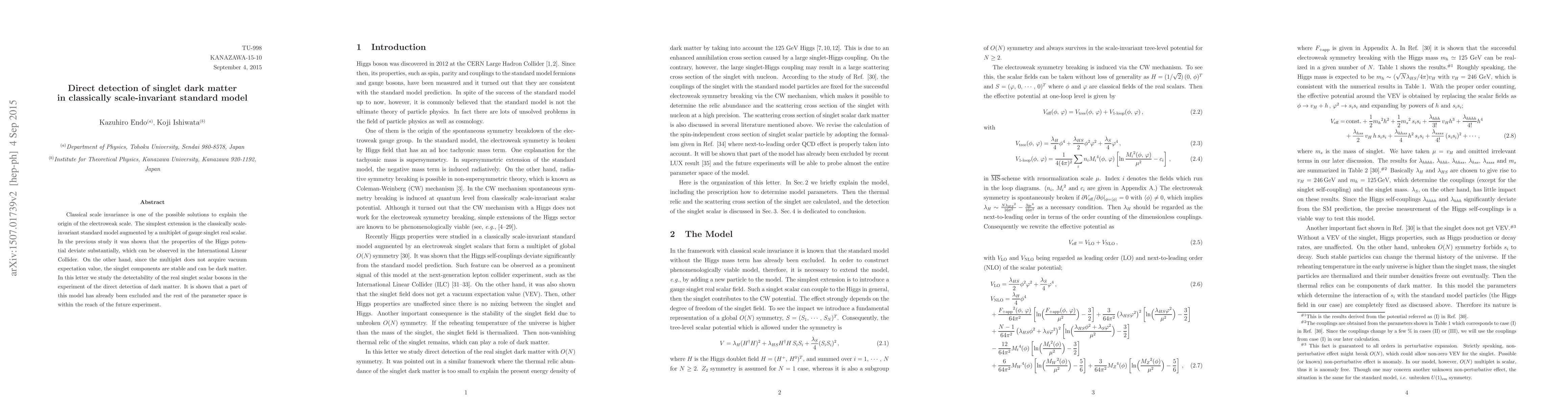 This paper explores the detection of stable singlet dark matter in a classically scale-invariant standard model, demonstrating that parts of the model are already excluded, while the remaining parameter space is accessible for future experiments. The study highlights the potential of direct detection experiments to observe these real singlet scalar bosons.