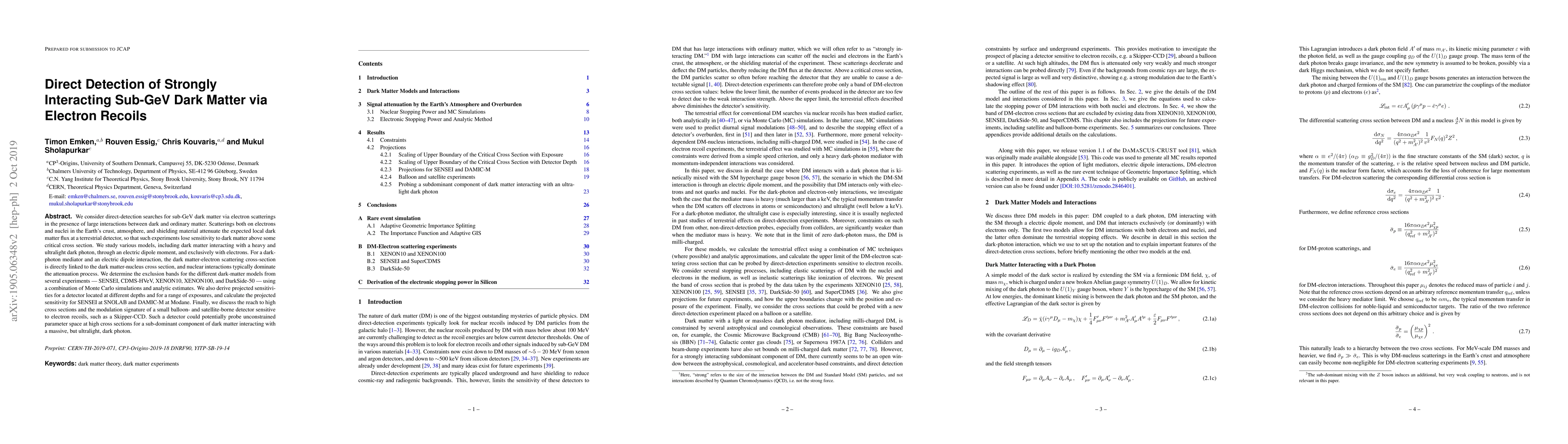 This paper investigates direct detection methods for sub-GeV dark matter through electron recoils, exploring models where dark matter interacts strongly with ordinary matter. It evaluates the attenuation effects of scatterings on electrons and nuclei in terrestrial environments, determining exclusion bands for various dark matter models using existing and future experiments.