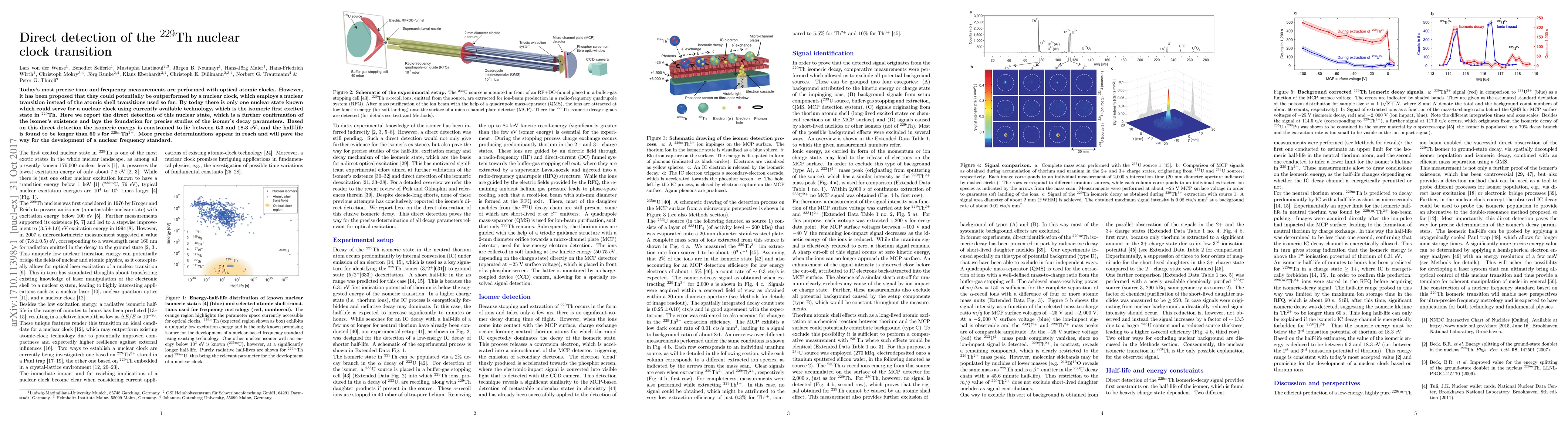 Today's most precise time and frequency measurements are performed with optical atomic clocks. However, it has been proposed that they could potentially be outperformed by a nuclear clock, which employs a nuclear transition instead of the atomic shell transitions used so far. By today there is only one nuclear state known which could serve for a nuclear clock using currently available technology, which is the isomeric first excited state in $^{229}$Th. Here we report the direct detection of this nuclear state, which is a further confirmation of the isomer's existence and lays the foundation for precise studies of the isomer's decay parameters. Based on this direct detection the isomeric energy is constrained to lie between 6.3 and 18.3 eV, and the half-life is found to be longer than 60 s for $^{229\mathrm{m}}$Th$^{2+}$. More precise determinations appear in reach and will pave the way for the development of a nuclear frequency standard.