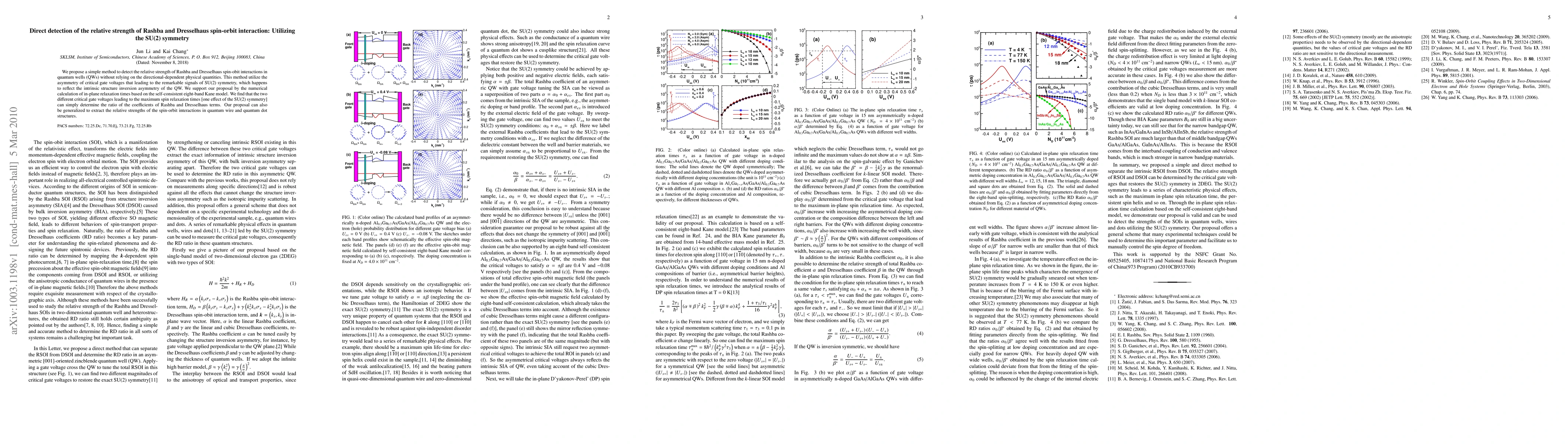 Researchers propose a method to detect the relative strength of Rashba and Dresselhaus spin-orbit interactions in quantum wells using critical gate voltages and SU(2) symmetry, offering a new way to measure spin relaxation times.