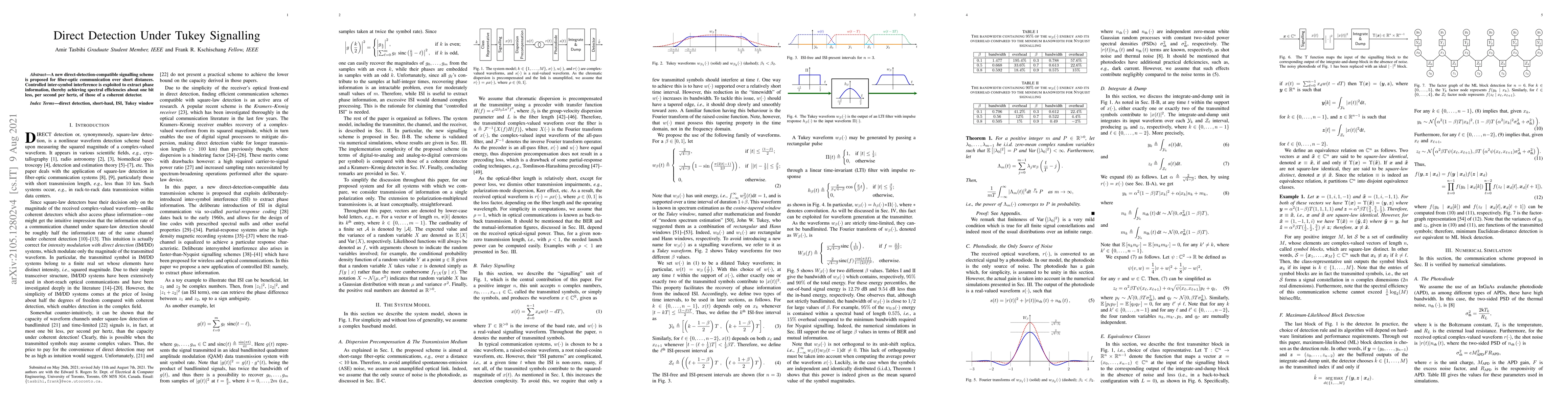 A new direct-detection-compatible signalling scheme is proposed for fiber-optic communication over short distances. Controlled inter-symbol interference is exploited to extract phase information, thereby achieving spectral efficiencies about one bit less, per second per hertz, of those of a coherent detector.