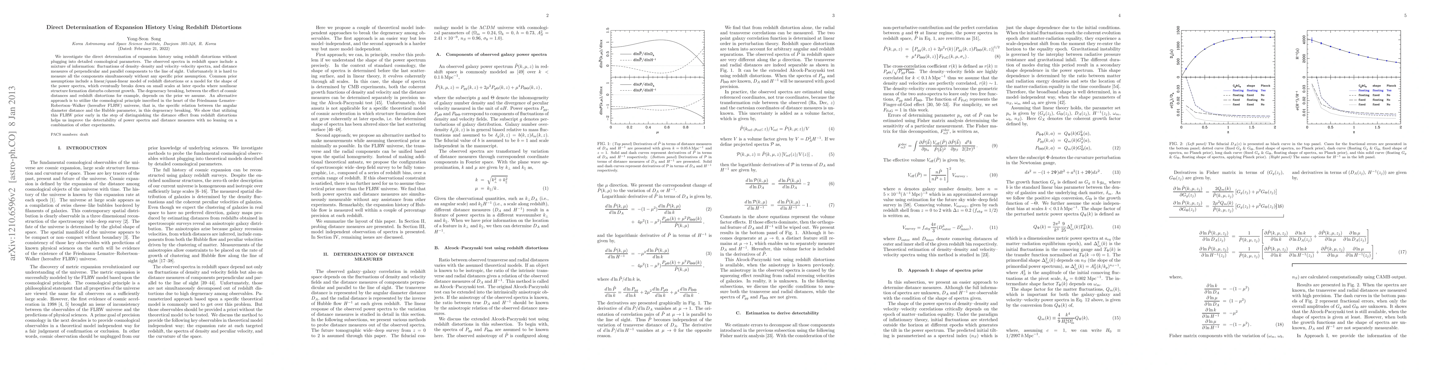 The paper introduces a novel method to directly determine expansion history using redshift distortions by employing the cosmological principle and the FLRW universe prior, allowing for the simultaneous observation of growth functions and distance measures with high precision.