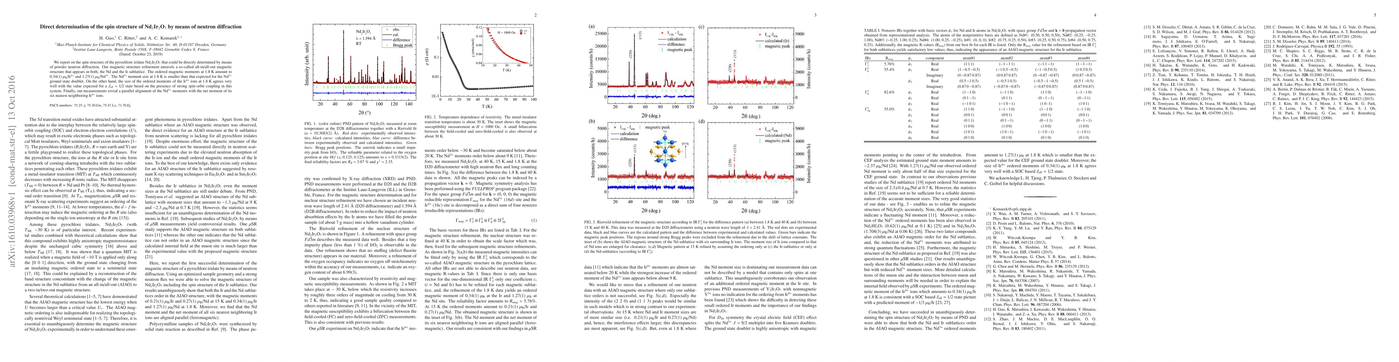 Researchers used neutron diffraction to determine the spin structure of Nd2Ir2O7, finding an all-in/all-out magnetic arrangement with ordered moments in both Nd and Ir sublattices.