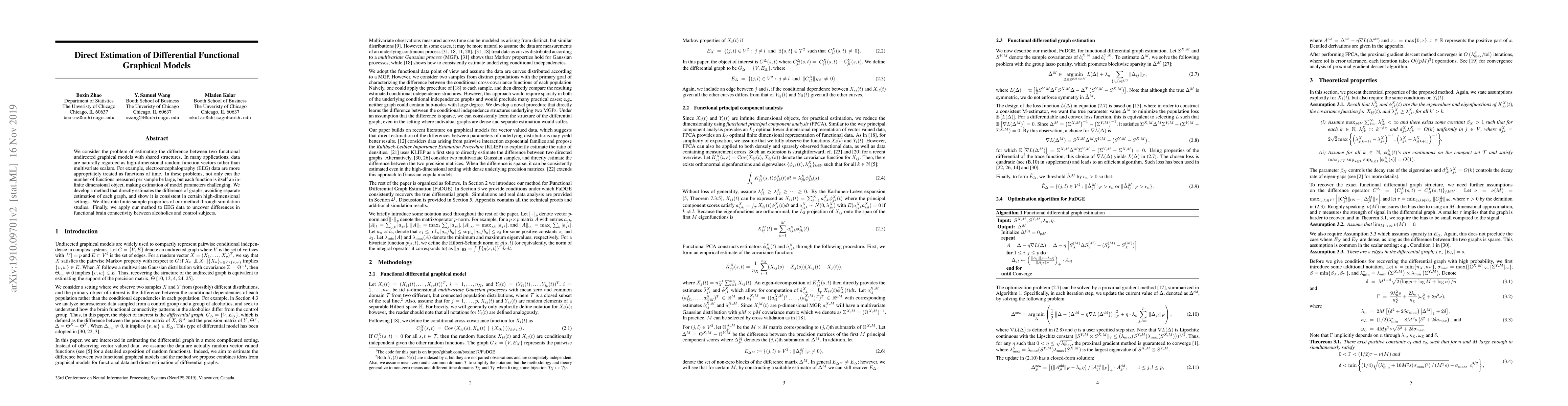 This paper proposes a method for directly estimating the difference between two high-dimensional functional undirected graphical models, avoiding separate estimation of each graph. The method is shown to be consistent in certain high-dimensional settings and is applied to EEG data to reveal differences in brain connectivity between alcoholics and control subjects.