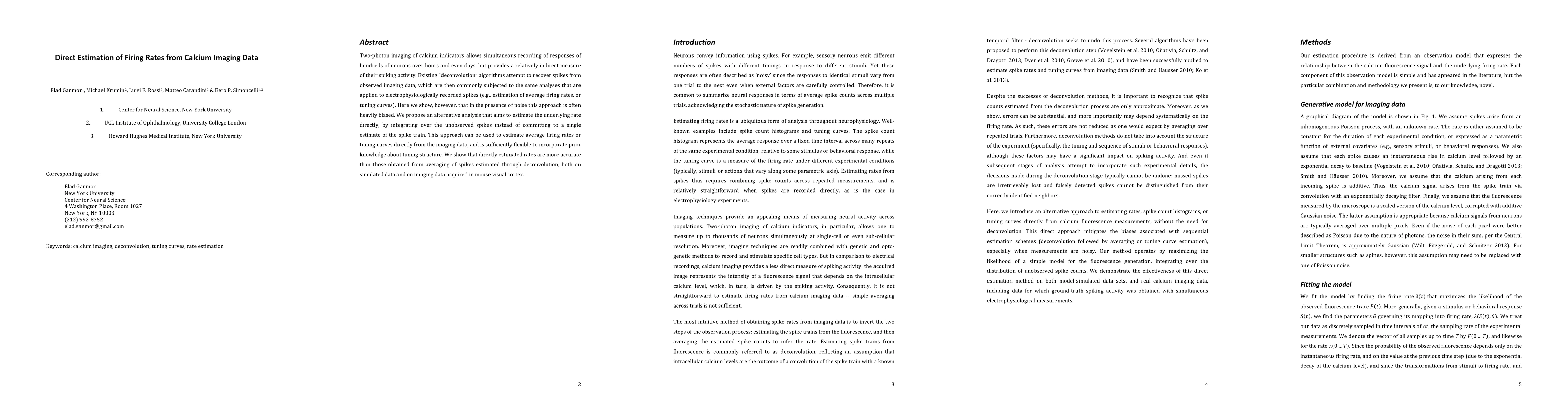 This paper proposes a novel method for directly estimating firing rates from calcium imaging data, bypassing traditional deconvolution techniques that are often biased by noise. The new approach provides more accurate average firing rates and tuning curves compared to conventional methods, as demonstrated through both simulated and real mouse visual cortex imaging data.