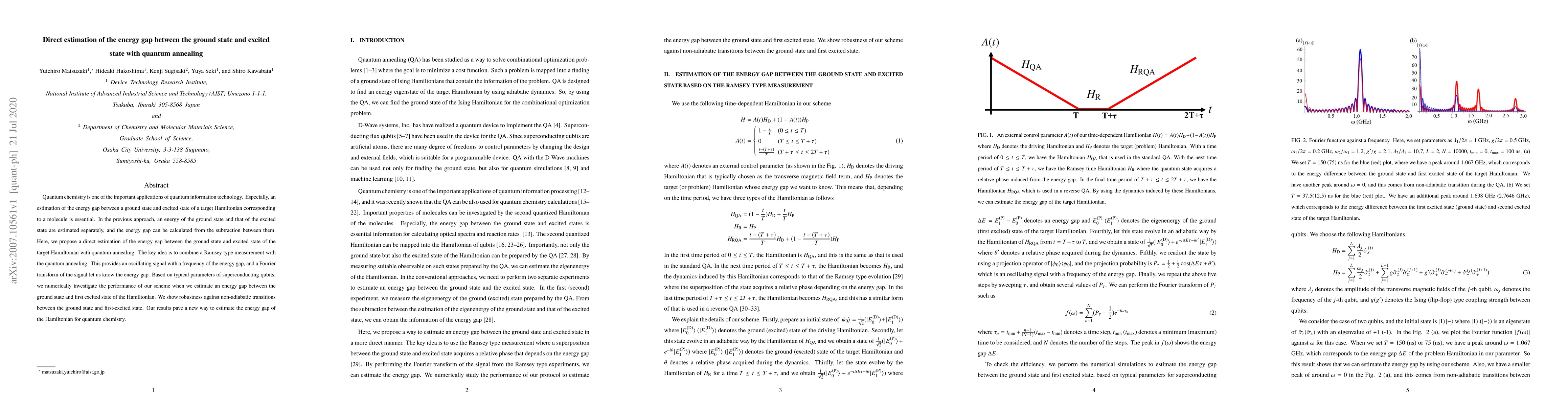 This paper proposes a novel method using quantum annealing combined with a Ramsey type measurement to directly estimate the energy gap between the ground state and excited state of a target Hamiltonian, offering a more robust approach than traditional separate estimation techniques. The method's performance is numerically investigated, demonstrating robustness against non-adiabatic transitions.