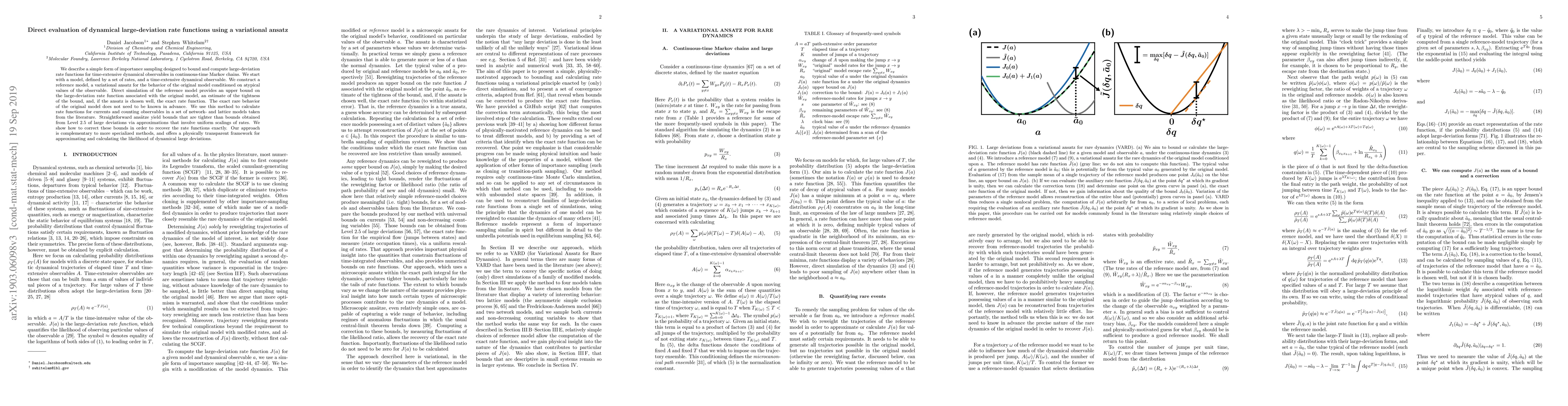 We describe a simple form of importance sampling designed to bound and compute large-deviation rate functions for time-extensive dynamical observables in continuous-time Markov chains. We start with a model, defined by a set of rates, and a time-extensive dynamical observable. We construct a reference model, a variational ansatz for the behavior of the original model conditioned on atypical values of the observable. Direct simulation of the reference model provides an upper bound on the large-deviation rate function associated with the original model, an estimate of the tightness of the bound, and, if the ansatz is chosen well, the exact rate function. The exact rare behavior of the original model does not need to be known in advance. We use this method to calculate rate functions for currents and counting observables in a set of network- and lattice models taken from the literature. Straightforward ansatze yield bounds that are tighter than bounds obtained from Level 2.5 of large deviations via approximations that involve uniform scalings of rates. We show how to correct these bounds in order to recover the rate functions exactly. Our approach is complementary to more specialized methods, and offers a physically transparent framework for approximating and calculating the likelihood of dynamical large deviations.