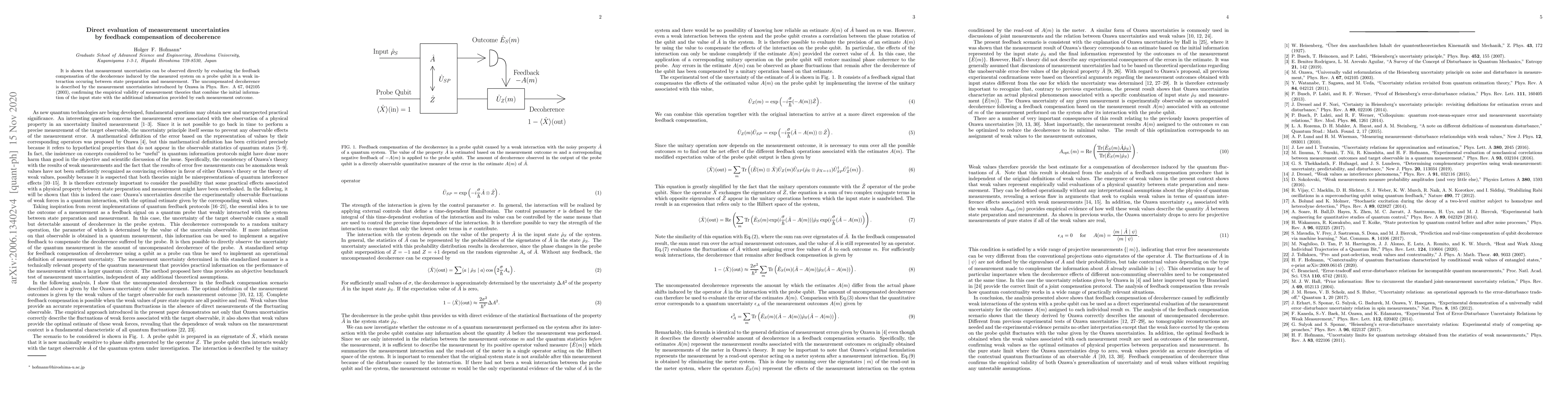 It is difficult to evaluate the precision of quantum measurements because it is not possible to conduct a second reference measurement on the same physical system to compare the measurement outcome with a more accurate value of the measured quantity. Here, I show that a direct evaluation of measurement uncertainties is possible when the measurement outcomes are used to compensate the small amount of decoherence induced in a probe qubit by carefully controlled interactions with the system. Since the original uncertainty of the target observable causes fluctuating phase shifts in the probe qubit, any additional information obtained about the target observable can be used to compensate a part of the decoherence by applying a conditional phase shift to the reference qubit. The magnitude of this negative feedback corresponds to an estimate of the target observable, and the uncompensated decoherence defines the uncertainty of that estimate. The results of the analysis show that the uncertainties of the estimates are given by the uncertainties introduced by Ozawa in Phys. Rev. A 67, 042105 (2003) and the optimal estimates are given by the weak values associated with the different measurement outcomes. Feedback compensation of decoherence therefore demonstrates the empirical validity of definitions of errors and estimates that combine the initial information of the input state with the additional information provided by each measurement outcome.