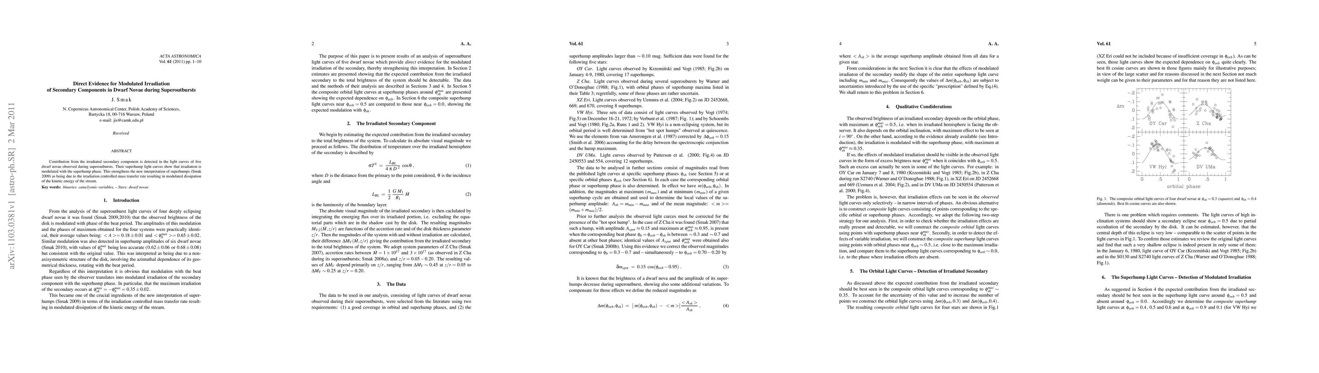Researchers have found direct evidence that secondary components in dwarf novae are modulated during superoutbursts, supporting the idea that superhumps result from irradiation-driven mass transfer rates.