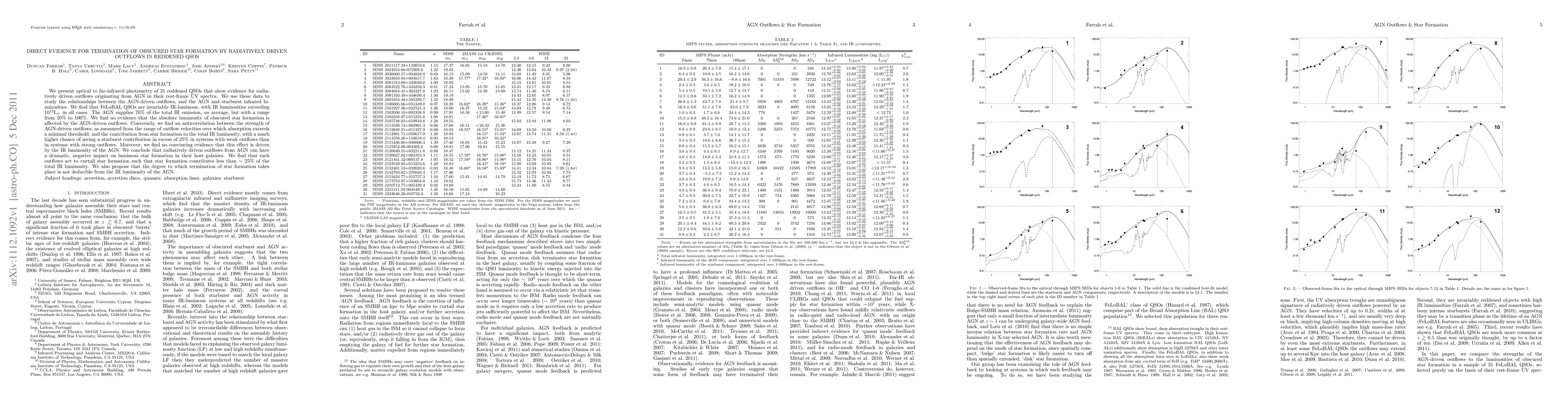 We present optical to far-infrared photometry of 31 reddened QSOs that show evidence for radiatively driven outflows originating from AGN in their rest-frame UV spectra. We use these data to study the relationships between the AGN-driven outflows, and the AGN and starburst infrared luminosities. We find that FeLoBAL QSOs are invariably IR-luminous, with IR luminosities exceeding 10^{12} Solar luminosities in all cases. The AGN supplies 76% of the total IR emission, on average, but with a range from 20% to 100%. We find no evidence that the absolute luminosity of obscured star formation is affected by the AGN-driven outflows. Conversely, we find an anticorrelation between the strength of AGN-driven outflows, as measured from the range of outflow velocities over which absorption exceeds a minimal threshold, and the contribution from star formation to the total IR luminosity, with a much higher chance of seeing a starburst contribution in excess of 25% in systems with weak outflows than in systems with strong outflows. Moreover, we find no convincing evidence that this effect is driven by the IR luminosity of the AGN. We conclude that radiatively driven outflows from AGN can have a dramatic, negative impact on luminous star formation in their host galaxies. We find that such outflows act to curtail star formation such that star formation contributes less than ~25% of the total IR luminosity. We also propose that the degree to which termination of star formation takes place is not deducible from the IR luminosity of the AGN.