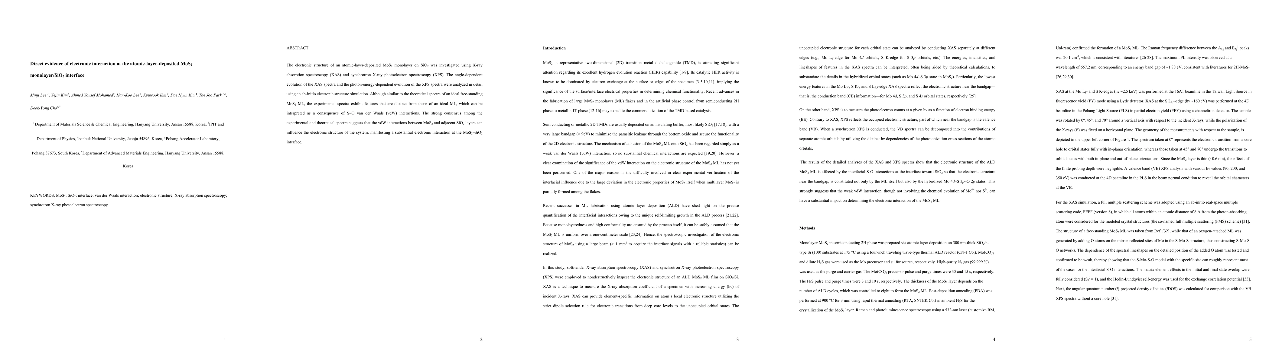 This study uses XAS and XPS to investigate the electronic structure of atomic-layer-deposited MoS2 on SiO2, revealing distinct features due to S-O van der Waals interactions. The findings suggest significant electronic interaction at the MoS2-SiO2 interface, influenced by these interactions.