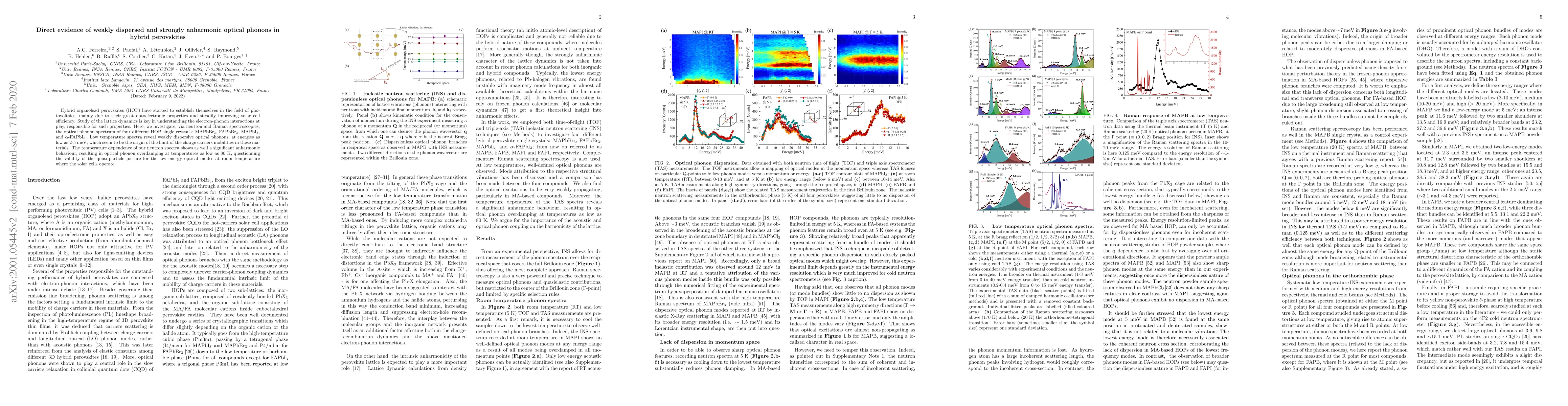Hybrid organolead perovskites (HOP) have started to establish themselves in the field of photovoltaics, mainly due to their great optoelectronic properties and steadily improving solar cell efficiency. Study of the lattice dynamics is key in understanding the electron-phonon interactions at play, responsible for such properties. Here, we investigate, via neutron and Raman spectroscopies, the optical phonon spectrum of four different HOP single crystals: MAPbBr$_3$, FAPbBr$_3$, MAPbI$_3$, and $\alpha$-FAPbI$_3$. Low temperature spectra reveal weakly dispersive optical phonons, at energies as low as 2-5~meV, which seem to be the origin of the limit of the charge carriers mobilities in these materials. The temperature dependence of our neutron spectra shows as well a significant anharmonic behaviour, resulting in optical phonon overdamping at temperatures as low as 80~K, questionning the validity of the quasi-particle picture for the low energy optical modes at room temperature where the solar cells operate.