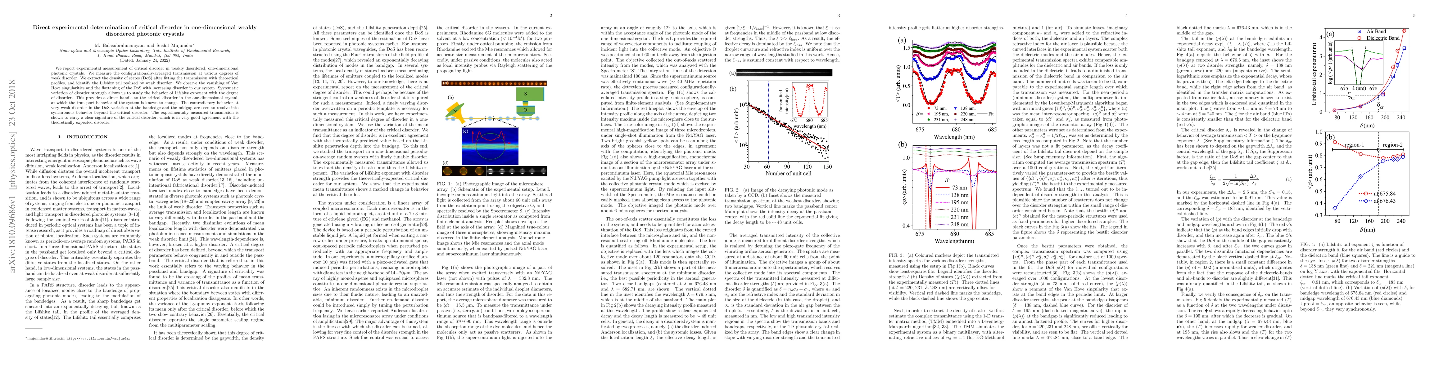 This paper reports an experimental determination of critical disorder in one-dimensional weakly disordered photonic crystals, observing the vanishing of Van Hove singularities and the flattening of the density of states with increasing disorder. The study reveals a synchronous behavior beyond the critical disorder, with the transmission showing a clear signature that aligns well with theoretical predictions.