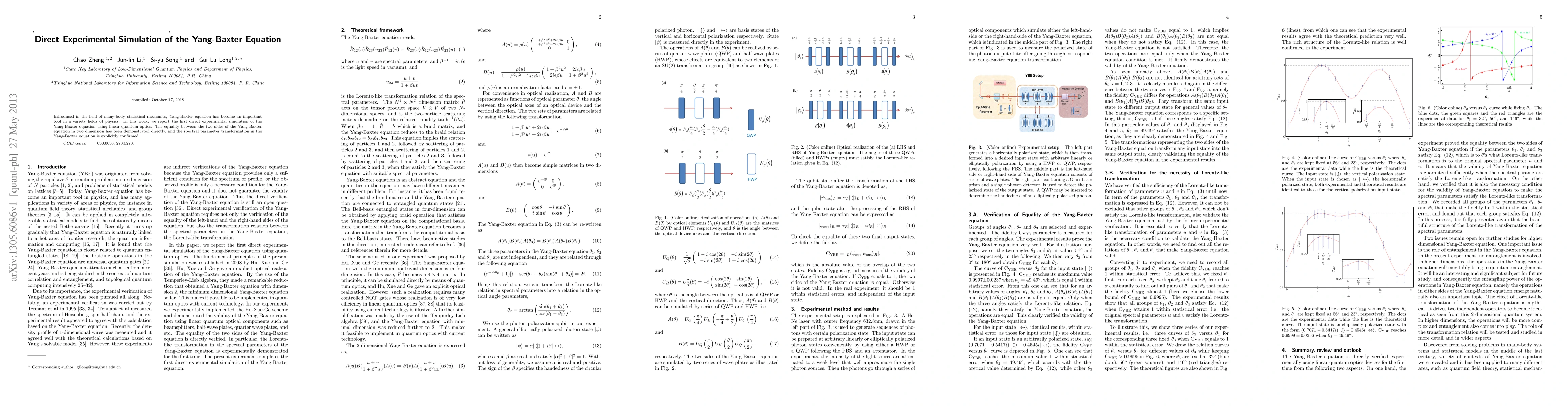 This research presents the first direct experimental simulation of the Yang-Baxter equation using linear quantum optics, confirming the equality between its two sides in two dimensions and explicitly verifying the spectral parameter transformation.