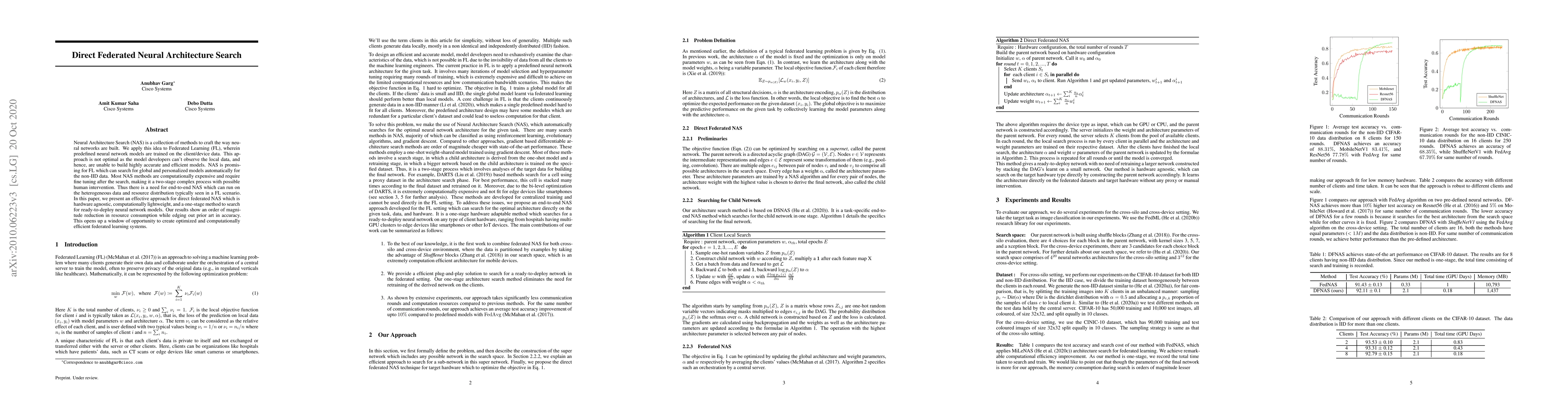 This paper proposes a direct federated neural architecture search (NAS) method that is lightweight and one-stage, aiming to optimize neural network models for federated learning scenarios. The approach significantly reduces resource consumption and outperforms existing methods in accuracy, enabling efficient federated learning systems.
