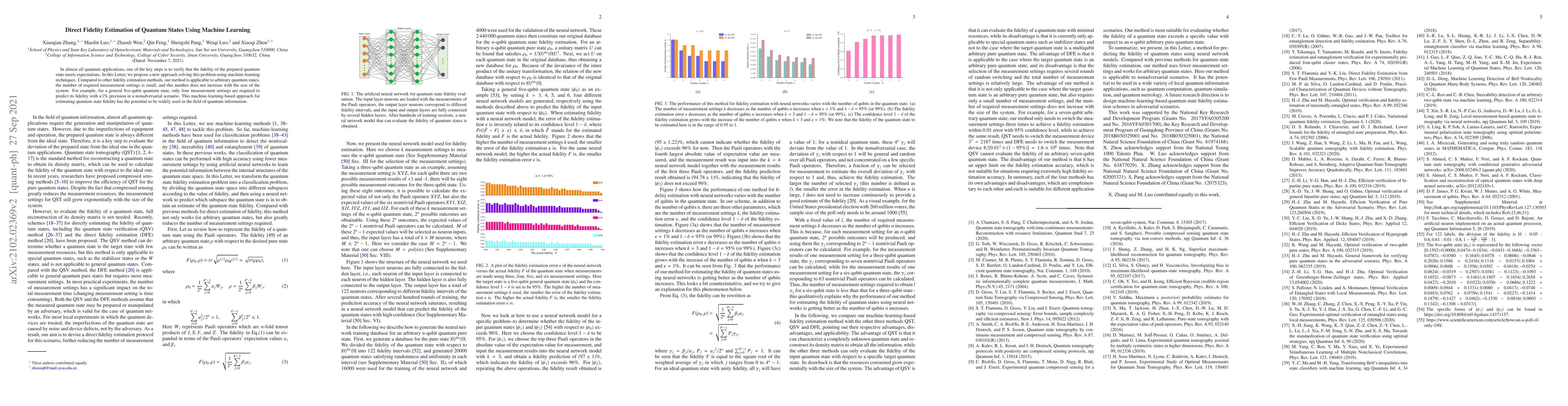This paper proposes a machine-learning technique for estimating the fidelity of quantum states, requiring minimal measurement settings that remain constant regardless of the system's size. This method offers precise fidelity estimation for arbitrary quantum states, exemplified by a five-qubit state needing only four measurements for $\pm1\%$ accuracy.