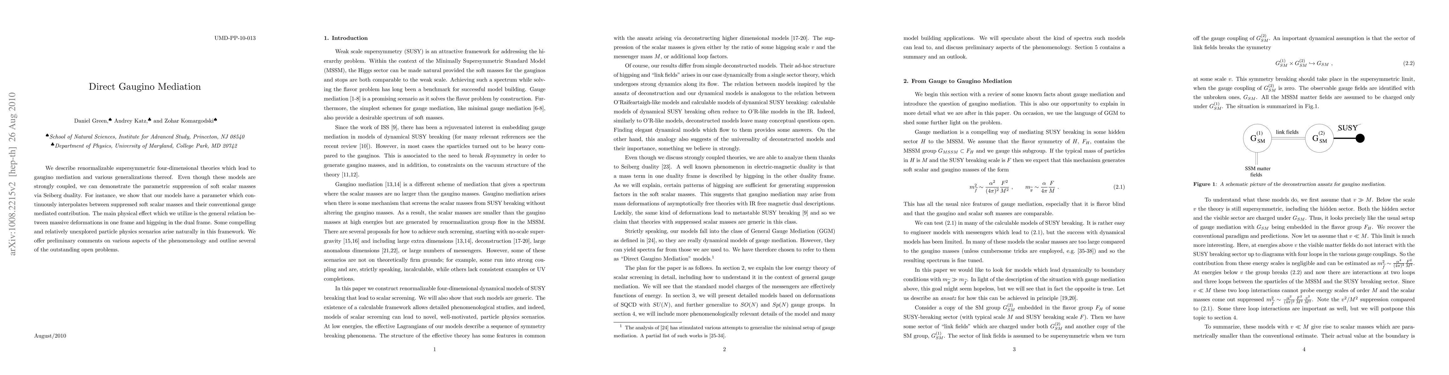 We describe renormalizable supersymmetric four-dimensional theories which lead to gaugino mediation and various generalizations thereof. Even though these models are strongly coupled, we can demonstrate the parametric suppression of soft scalar masses via Seiberg duality. For instance, we show that our models have a parameter which continuously interpolates between suppressed soft scalar masses and their conventional gauge mediated contribution. The main physical effect which we utilize is the general relation between massive deformations in one frame and higgsing in the dual frame. Some compelling and relatively unexplored particle physics scenarios arise naturally in this framework. We offer preliminary comments on various aspects of the phenomenology and outline several of the outstanding open problems.