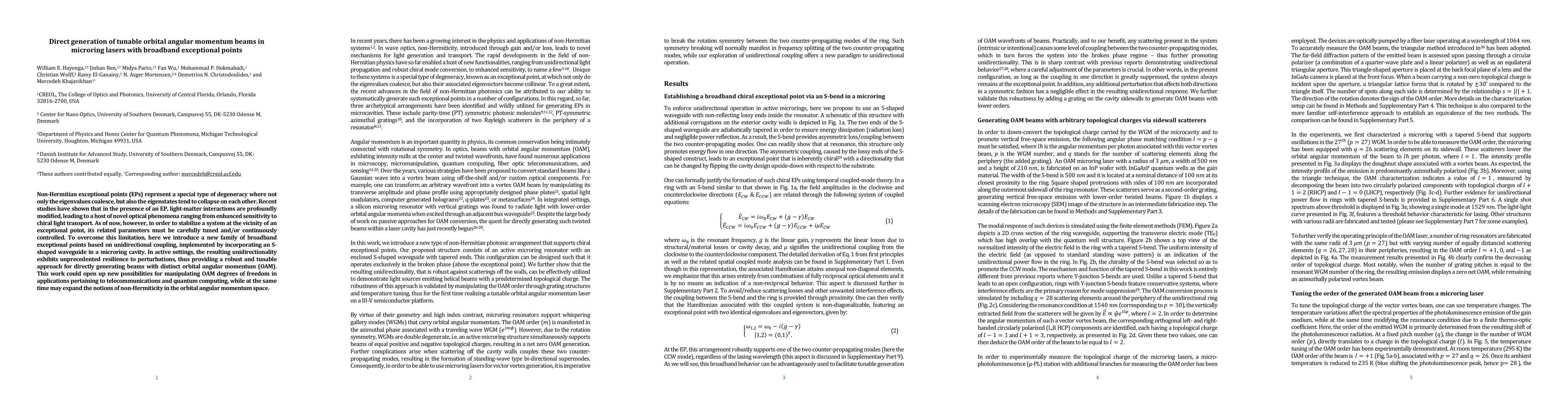 This paper introduces a method for generating tunable orbital angular momentum beams using broadband exceptional points in microring lasers with S-shaped waveguides. This approach offers robust stability and tunability, potentially advancing applications in telecommunications and quantum computing.
