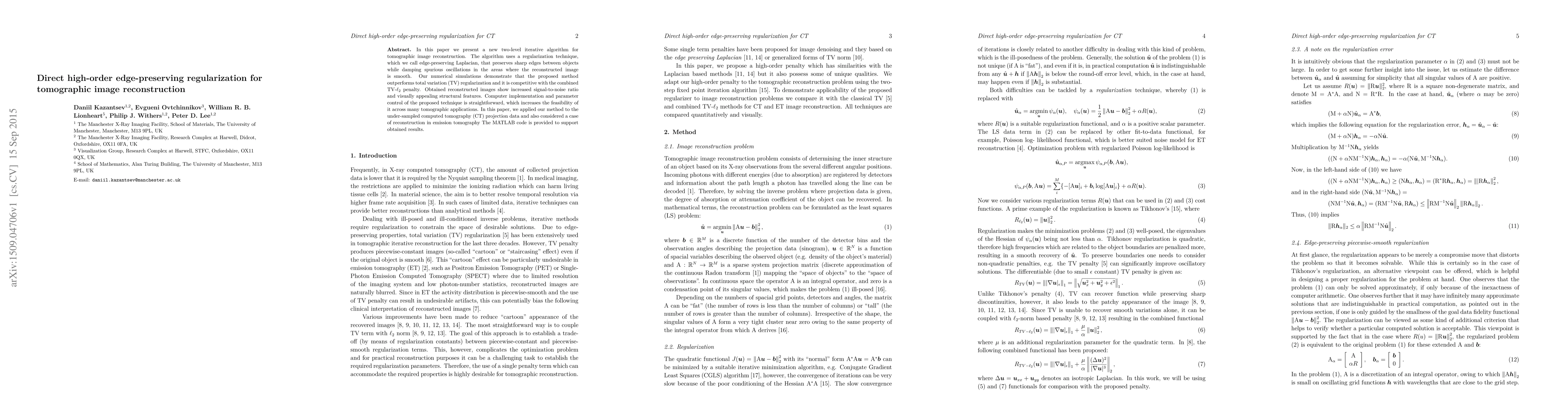 This paper introduces a new iterative algorithm for tomographic image reconstruction using edge-preserving Laplacian regularization, which outperforms total variation regularization and maintains sharp edges while reducing noise. The method is applied to under-sampled CT and emission tomography data, demonstrating improved signal-to-noise ratio and structural clarity.