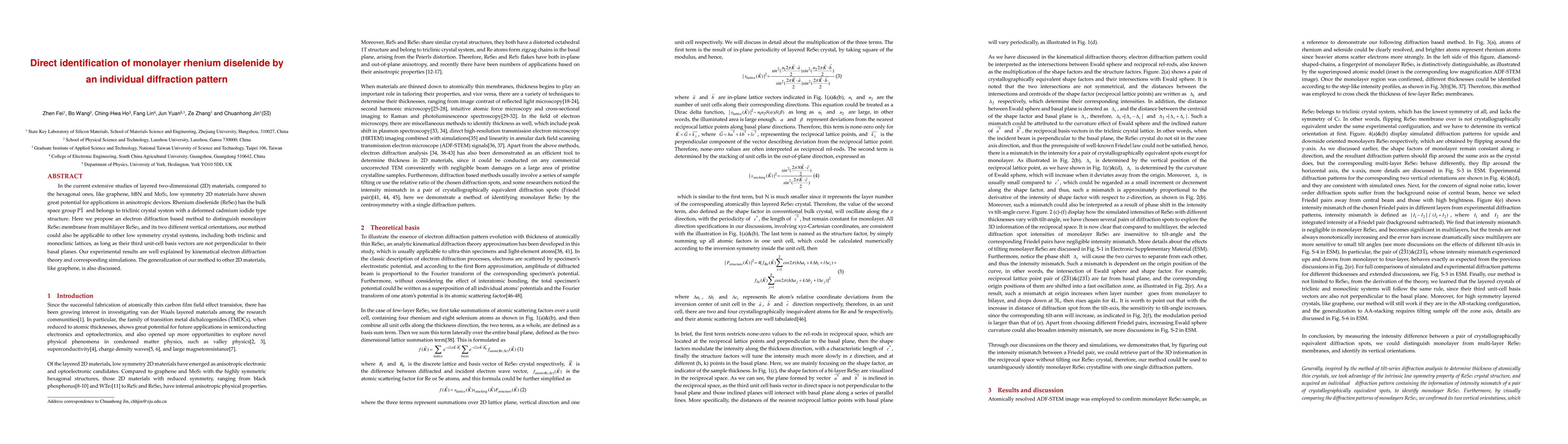 Researchers successfully identified monolayer rhenium diselenide using an individual electron diffraction pattern, a method applicable to low-symmetry crystal systems. This finding could enable the development of anisotropic devices with unique properties.