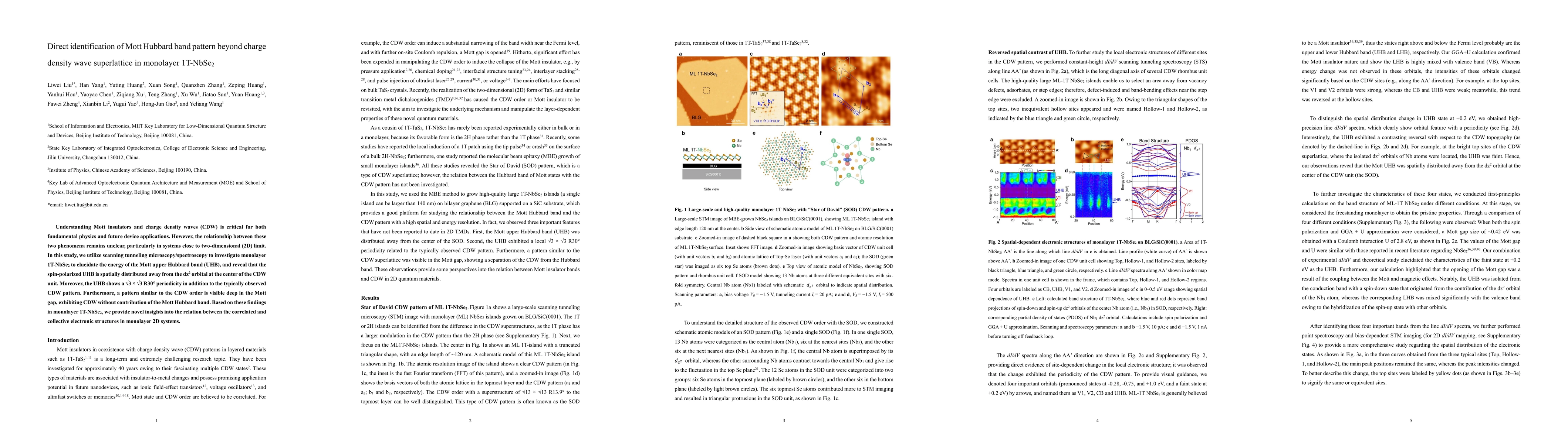 Understanding Mott insulators and charge density waves (CDW) is critical for both fundamental physics and future device applications. However, the relationship between these two phenomena remains unclear, particularly in systems close to two-dimensional (2D) limit. In this study, we utilize scanning tunneling microscopy/spectroscopy to investigate monolayer 1T-NbSe2 to elucidate the energy of the Mott upper Hubbard band (UHB), and reveal that the spin-polarized UHB is spatially distributed away from the dz2 orbital at the center of the CDW unit. Moreover, the UHB shows a root3 x root3 R30{\deg} periodicity in addition to the typically observed CDW pattern. Furthermore, a pattern similar to the CDW order is visible deep in the Mott gap, exhibiting CDW without contribution of the Mott Hubbard band. Based on these findings in monolayer 1T-NbSe2, we provide novel insights into the relation between the correlated and collective electronic structures in monolayer 2D systems.