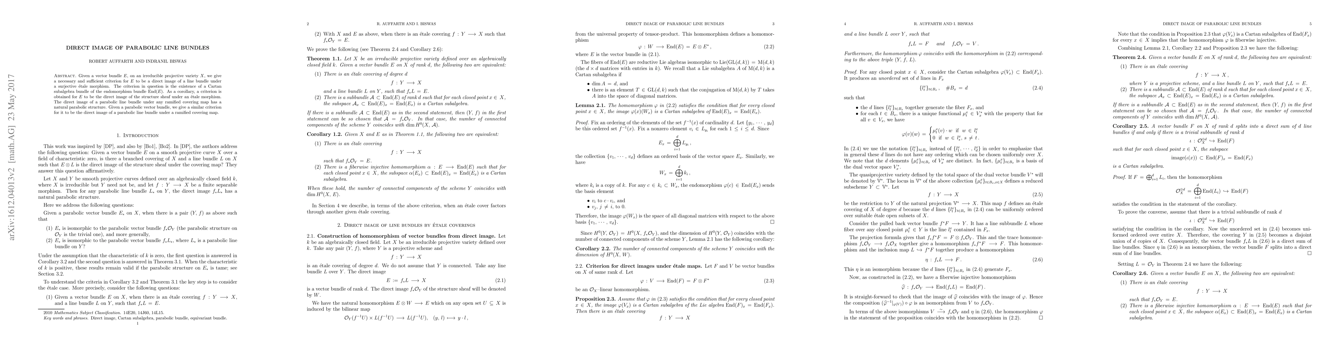 Researchers provide a necessary and sufficient criterion for vector bundles to be direct images of line bundles under specific morphisms, with implications for understanding parabolic structures in algebraic geometry.