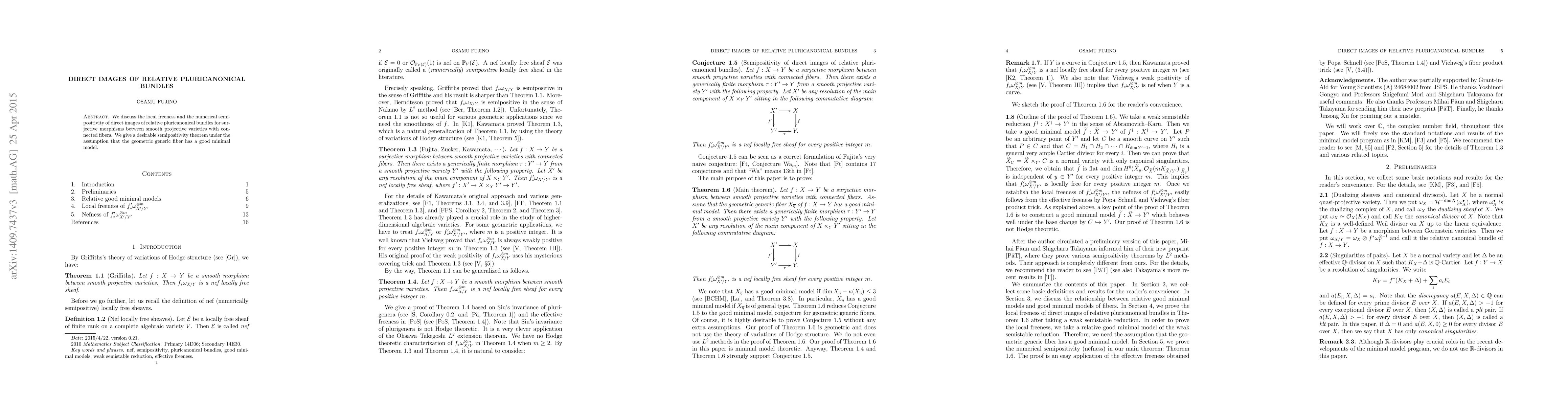 Summary: This paper investigates the local freeness and numerical semipositivity of direct images of relative pluricanonical bundles in morphisms between smooth projective varieties, proving a semipositivity theorem under the condition that the generic fiber possesses a good minimal model.