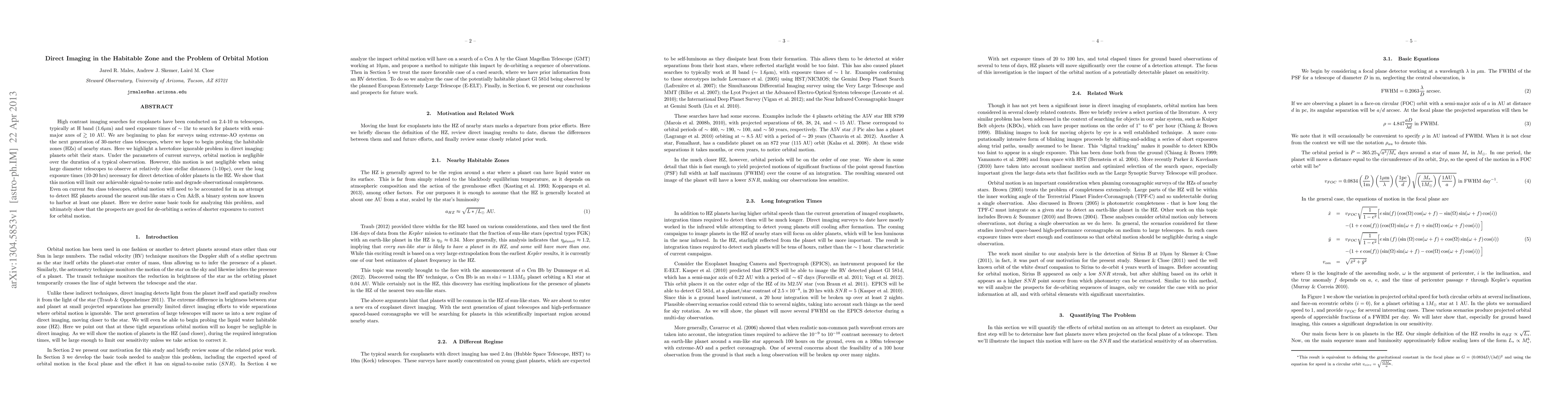 High contrast imaging searches for exoplanets have been conducted on 2.4-10 m telescopes, typically at H band (1.6 microns) and used exposure times of ~1 hr to search for planets with semi-major axes of > ~10 AU. We are beginning to plan for surveys using extreme-AO systems on the next generation of 30-meter class telescopes, where we hope to begin probing the habitable zones (HZs) of nearby stars. Here we highlight a heretofore ignorable problem in direct imaging: planets orbit their stars. Under the parameters of current surveys, orbital motion is negligible over the duration of a typical observation. However, this motion is not negligible when using large diameter telescopes to observe at relatively close stellar distances (1-10pc), over the long exposure times (10-20 hrs) necessary for direct detection of older planets in the HZ. We show that this motion will limit our achievable signal-to-noise ratio and degrade observational completeness. Even on current 8m class telescopes, orbital motion will need to be accounted for in an attempt to detect HZ planets around the nearest sun-like stars alpha Cen A & B, a binary system now known to harbor at least one planet. Here we derive some basic tools for analyzing this problem, and ultimately show that the prospects are good for de-orbiting a series of shorter exposures to correct for orbital motion.