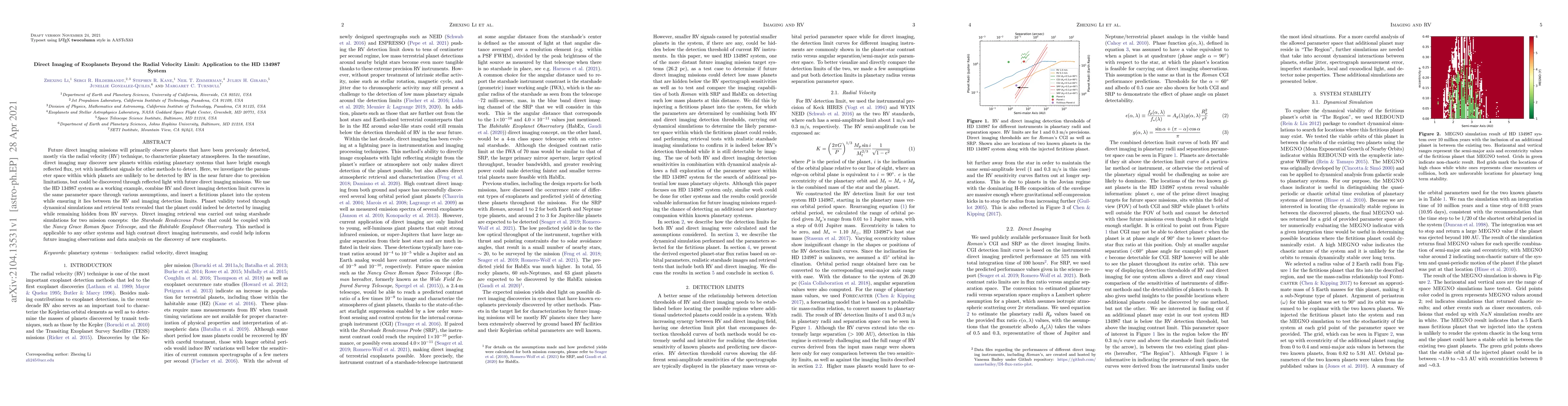 Future direct imaging missions will primarily observe planets that have been previously detected, mostly via the radial velocity (RV) technique, to characterize planetary atmospheres. In the meantime, direct imaging may discover new planets within existing planetary systems that have bright enough reflected flux, yet with insufficient signals for other methods to detect. Here, we investigate the parameter space within which planets are unlikely to be detected by RV in the near future due to precision limitations, but could be discovered through reflected light with future direct imaging missions. We use the HD 134987 system as a working example, combine RV and direct imaging detection limit curves in the same parameter space through various assumptions, and insert a fictitious planet into the system while ensuring it lies between the RV and imaging detection limits. Planet validity tested through dynamical simulations and retrieval tests revealed that the planet could indeed be detected by imaging while remaining hidden from RV surveys. Direct imaging retrieval was carried out using starshade simulations for two mission concepts: the Starshade Rendezvous Probe that could be coupled with the Nancy Grace Roman Space Telescope, and the Habitable Exoplanet Observatory. This method is applicable to any other systems and high contrast direct imaging instruments, and could help inform future imaging observations and data analysis on the discovery of new exoplanets.