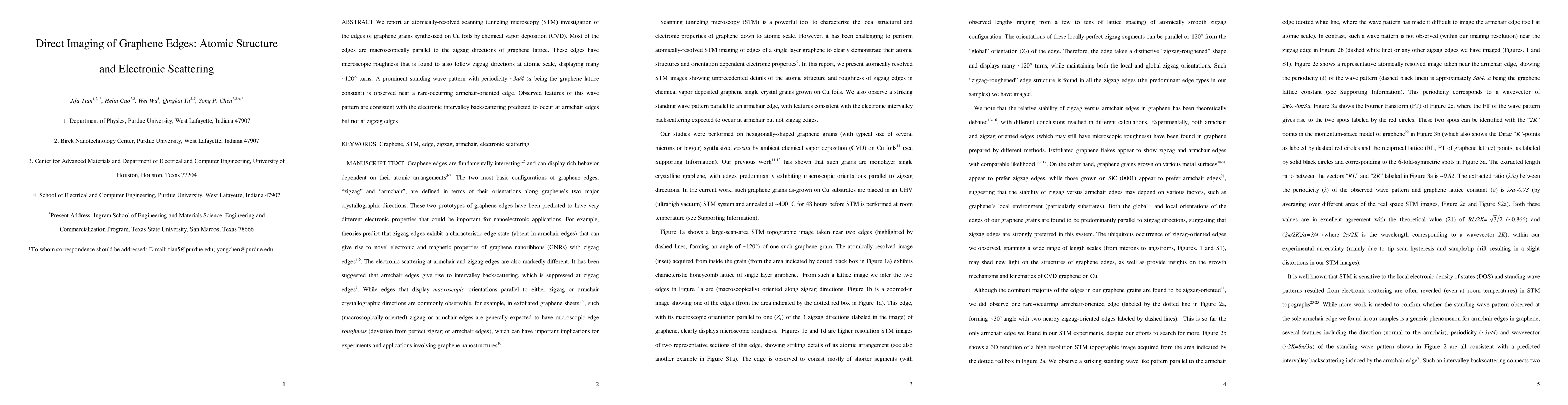 We report an atomically-resolved scanning tunneling microscopy (STM) investigation of the edges of graphene grains synthesized on Cu foils by chemical vapor deposition (CVD). Most of the edges are macroscopically parallel to the zigzag directions of graphene lattice. These edges have microscopic roughness that is found to also follow zigzag directions at atomic scale, displaying many ~120 degree turns. A prominent standing wave pattern with periodicity ~3a/4 (a being the graphene lattice constant) is observed near a rare-occurring armchair-oriented edge. Observed features of this wave pattern are consistent with the electronic intervalley backscattering predicted to occur at armchair edges but not at zigzag edges.
