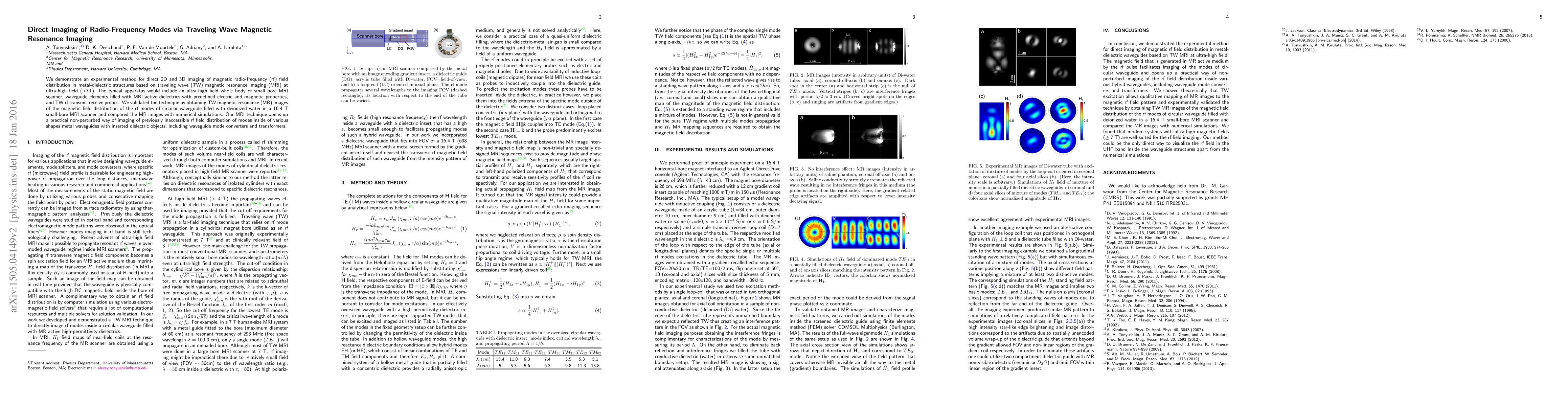 The paper presents a novel approach for direct imaging of rf modes in metal-dielectric structures using TW MRI at ultra-high fields, providing a practical method for visualizing previously inaccessible rf field distributions.