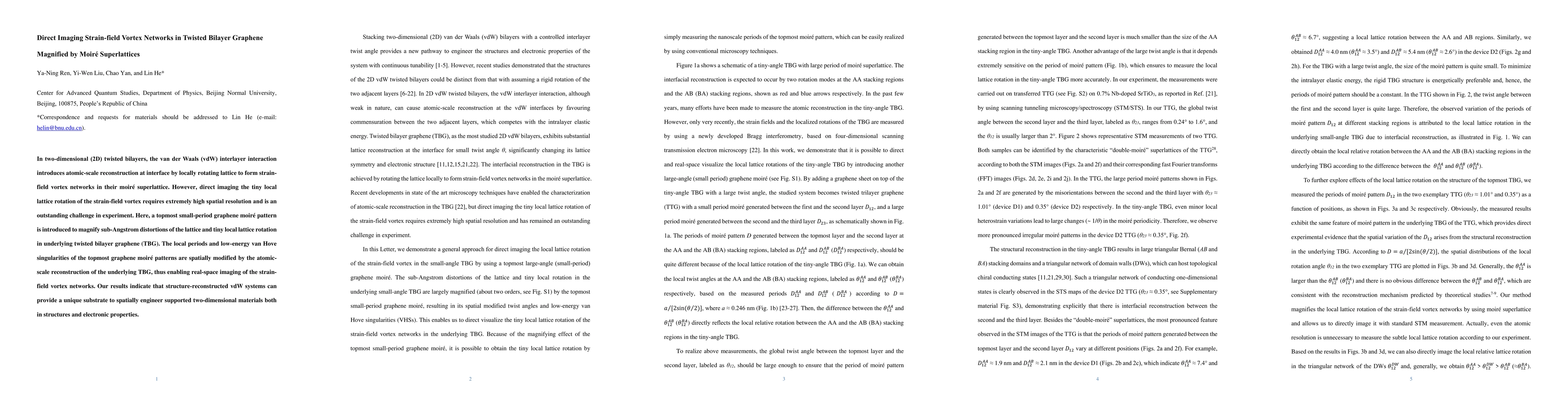 This paper demonstrates a method to magnify and directly image strain-field vortex networks in twisted bilayer graphene using a topmost small-period graphene moiré pattern, revealing atomic-scale lattice distortions and rotations. The results suggest that van der Waals systems can be engineered to spatially modify and enhance the properties of supported two-dimensional materials.