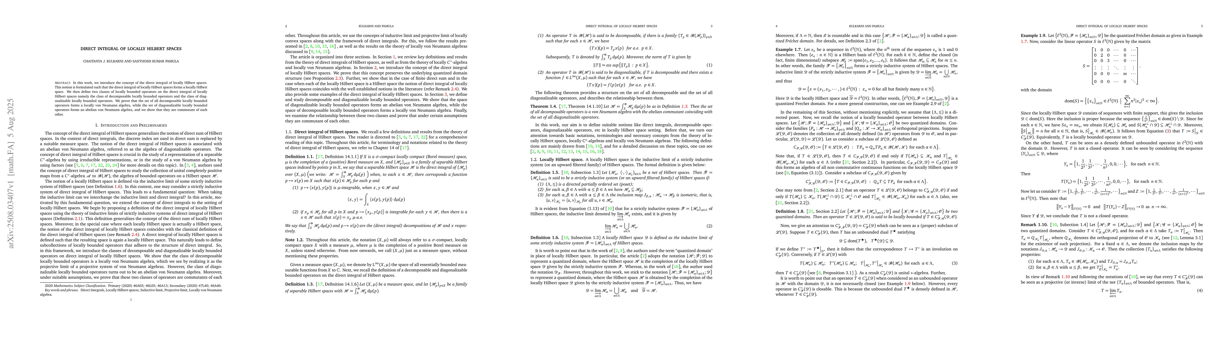 A novel approach to studying locally von Neumann algebras using direct integrals was developed.