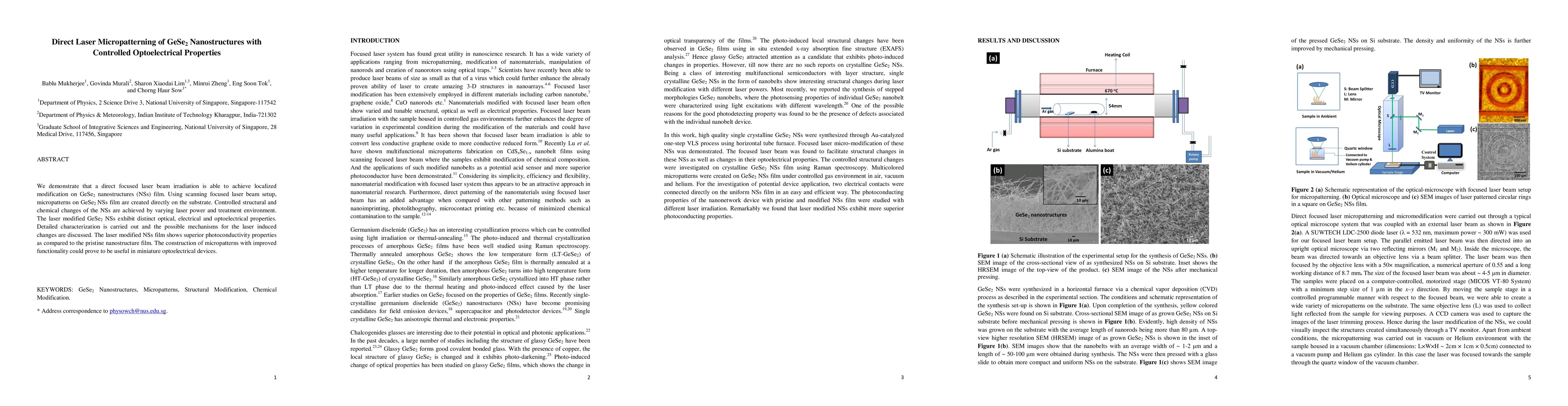 Researchers used laser beams to create micropatterns on GeSe2 nanostructures, achieving controlled structural and chemical changes that improve photoconductivity properties. This technique has potential applications in miniature optoelectrical devices.