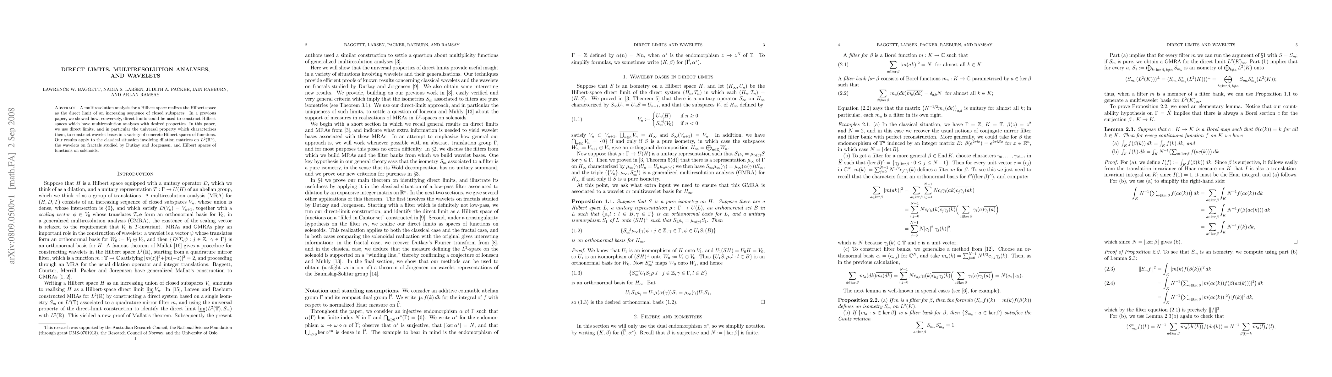 This paper constructs wavelet bases using direct limits and multiresolution analyses, applying the method to various Hilbert spaces including $L^2(\R^n)$, wavelets on fractals, and functions on solenoids. The approach leverages the universal property of direct limits to achieve desired wavelet properties.