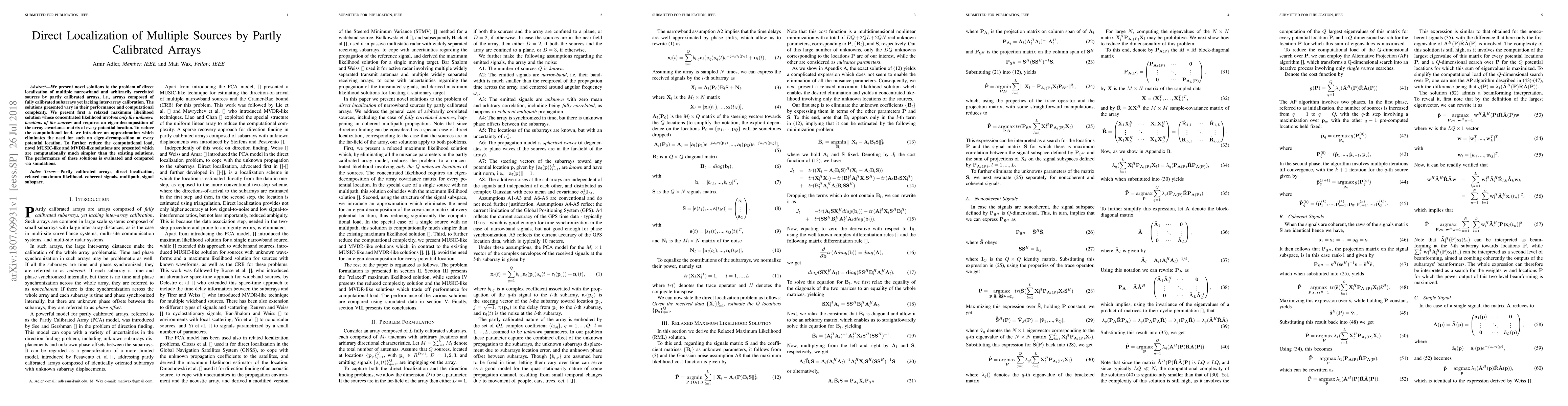This research paper presents novel solutions for localizing multiple narrow-band sources using partly calibrated arrays, with varying performance and computational complexity.